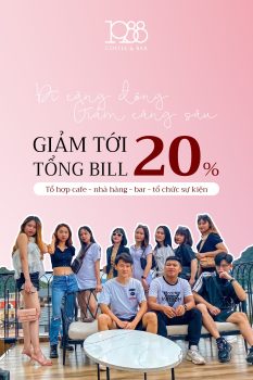 Tham khảo ngay tổ hợp cafe – nhà hàng – bar – tổ chức sự kiện và ưu đãi siêu hời từ 1988 nhé: