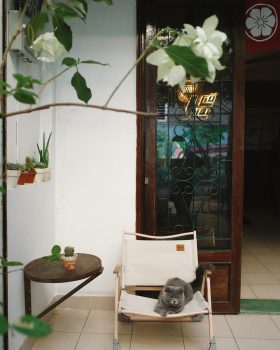 Ở đây tụi mình có gió, có nắng, có cà phê ngon và có em bé mèo Xám thoắt ẩn thoát hiện vì bình thường em bé bận ngủ. —————