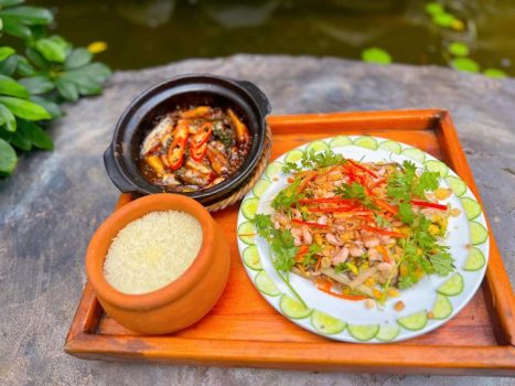 #Gỏi bông điên điển tép rong CƠM NIÊU NỒI ĐẤT HUỲNH HƯƠNG