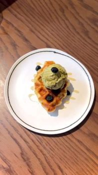 𝗖𝗿𝗼𝗳𝗳𝗹𝗲 𝘄𝗶𝘁𝗵 𝗨𝗷𝗶 𝗛𝗼𝘂𝗷𝗶𝗰𝗵𝗮 𝗜𝗰𝗲-𝗰𝗿𝗲𝗮𝗺 | Khi những chiêc bánh croffle được cho vào lò nướng ở nhiệt độ vừa phải sẽ cho ra những thành phẩm sánh vàng óng ả. Những chiếc bánh ấy kết hợp cùng với 1 viên kem Houjicha được các bạn nhân viên tự tay chế biến sẽ làm cho món ăn trở nên mát lạnh cho những ngày…