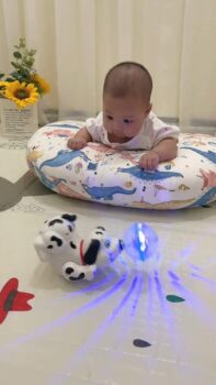 #Bé #nằm #nhìn #chú #cún #đốm #xoay #tròn #một #lúc #mỗi #ngày #bé #sẽ #được #rèn #luyện #sức #mạnh #cơ #lưng #đồng #thời #tập #ngẩng #đầu #và #kích #thích #thị #giác