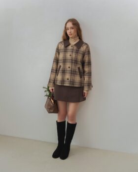 𝐖𝐡𝐢𝐭𝐧𝐞𝐲 𝐣𝐚𝐜𝐤𝐞𝐭: Áo khoác dạ wool kẻ phối nâu dáng ngắn