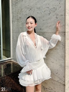 Quyến rũ đầy lãng mạn là những ấn tượng đầu tiên khi ngắm nhìn những khoảnh khắc thanh xuân của cô gái 21SIX cùng set váy chiffon xếp nhún bèo mix cùng bodysuit ren hoa 3D trong BST YOUTH IN THE CITY. Một outfit mềm mại, nhẹ mát, nuông chiều làn da với điểm nhấn tay bồng dài cùng kỹ thuật xếp bèo, xếp nhún kỳ công mang đến sự nữ tính để cô gái 21SIX thêm rạng rỡ, lưu lại những khoảnh khắc mùa hè tuyệt đẹp.