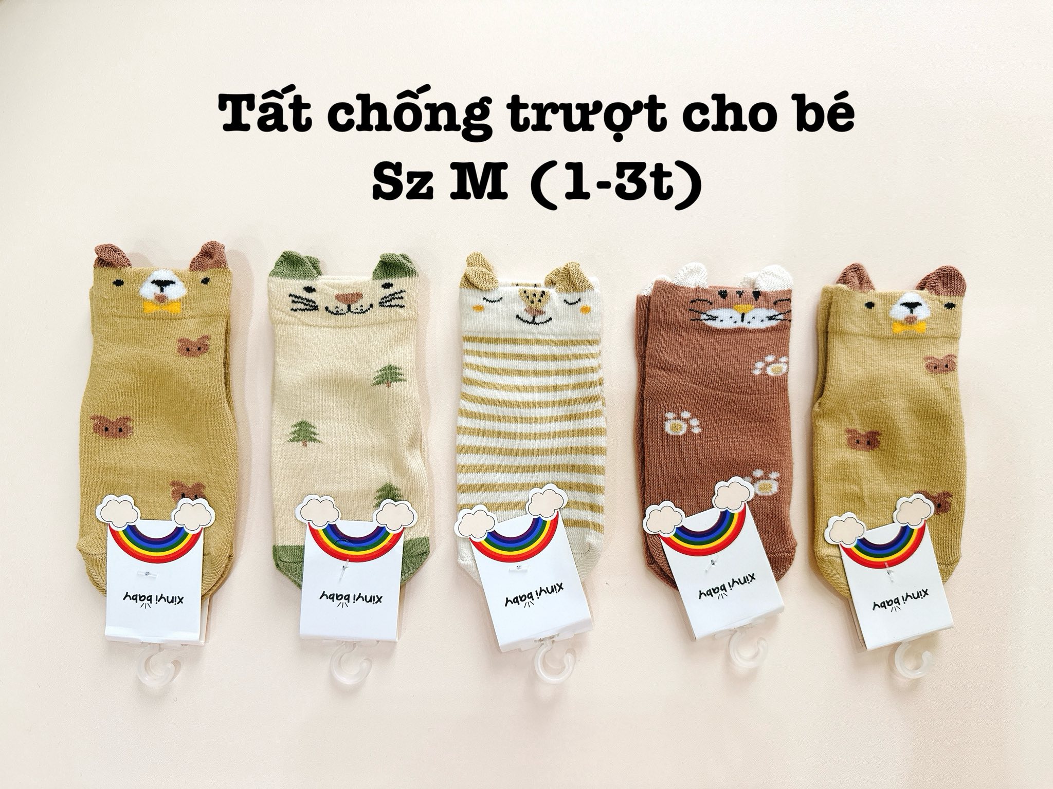 🍀🍀🍀Tất giữ ấm, chống trượt cho bé e sẵn 2 size S (0-1t) , M (1-3t)