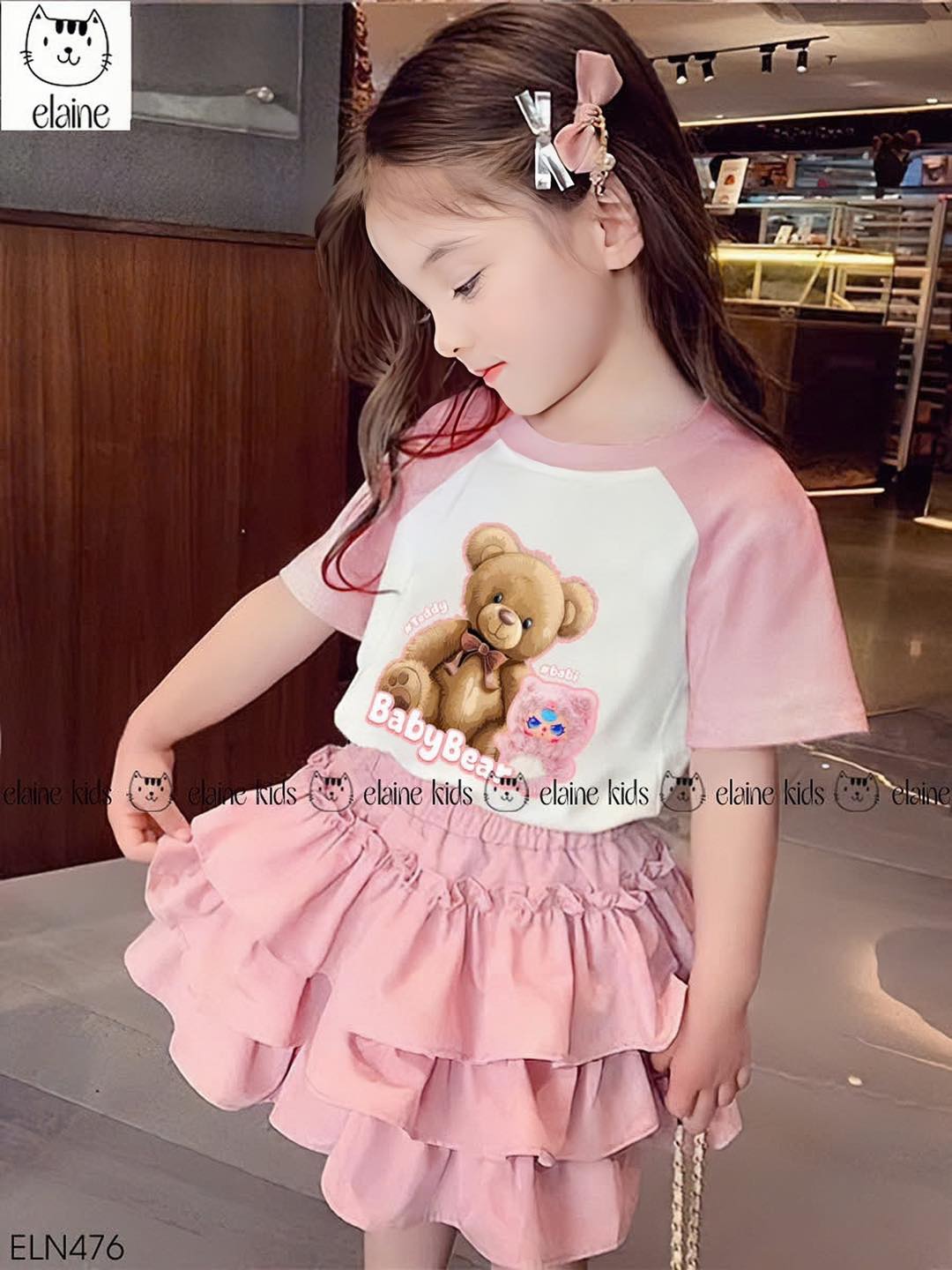 #á𝐨 #𝐯á𝐲 #𝐬𝐢ê𝐮 #𝐱𝐢𝐧𝐡 #𝐜𝐡𝐨 #𝐧à𝐧𝐠 #𝐜ô𝐧𝐠 #𝐜𝐡ú𝐚 #𝐛é #𝐧𝐡ỏSet #bộ #gồm #áo #cotton #trắng #phối #tay #hồng #hoạ #tiết #gấu #dễ #thương #chân #váy #thô #mềm #nhún #bèo #điệu #đà #kèm #quần #đù