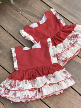 Em gom được ít vải kiện đỏ xinh quá ạ! Hoạ tiết trên vải đỏ có 2 dạng pháo nhỏ và lớn được may ngẫu nhiên như ảnh sàn!! Xinh xắn quá luôn ạ!!