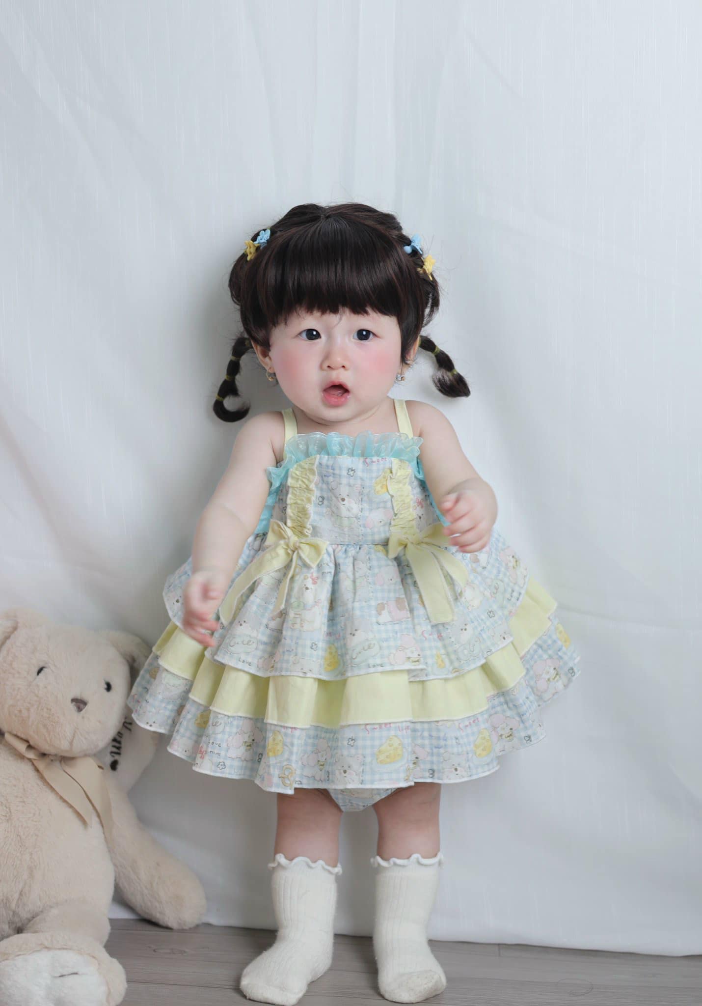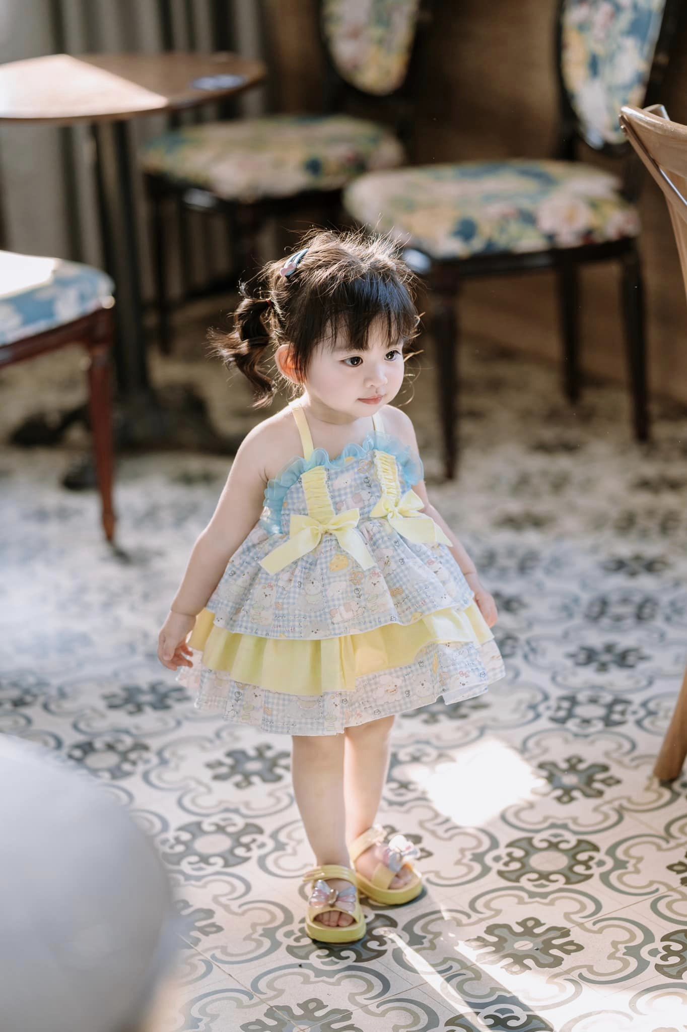 Món quà xinh đẹp dành cho các con yêu ngày 01-06 😍 Vẫn là form bồng xoè nhà e siêu đỉnh không cần mặc tùng ạ. Màu xanh – vàng nhẹ nhàng siêu yêu, có kèm chip cho bé nữa ạ.