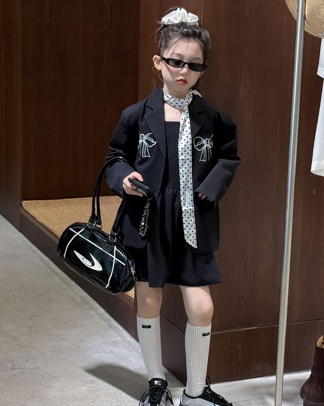#Set #Váy #Áo #Khoác #Bé #Gái #Sang #Chảnh #Như #Fashionista #Nhí #Outfit #chất #lừ #với #váy #đen #basic #phối #áo #khoác #họa #tiết #nơ #siêu #xinh #Tone #đen #cá #tính #dễ