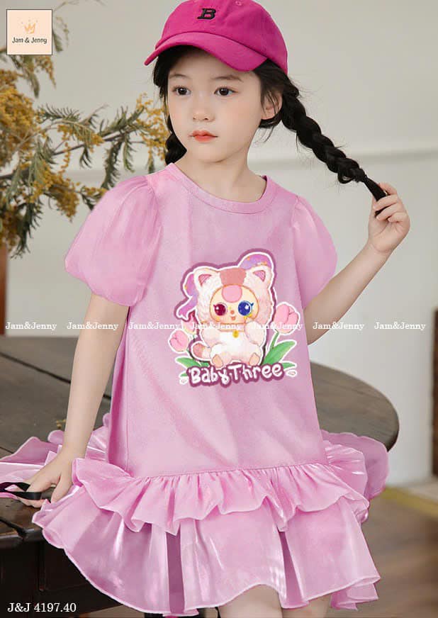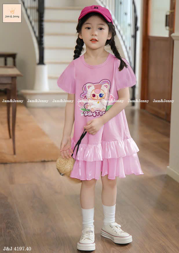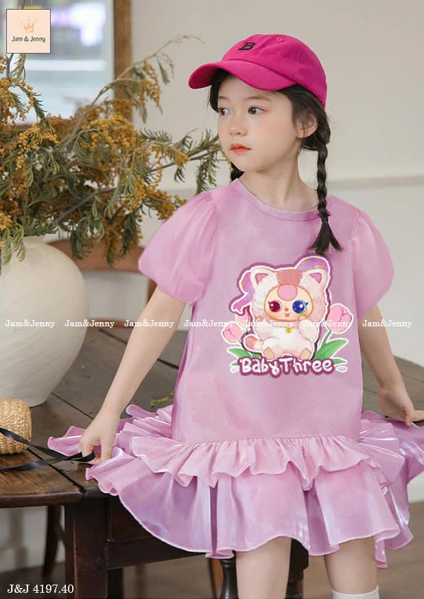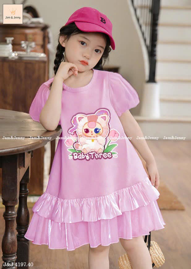 Váy bé gái Baby Three, màu tím nhạt hot trend ngọt lịm. Dáng váy siêu iu, chất vải cotton co giãn 4c bé mặc thoải mái lắm nha.