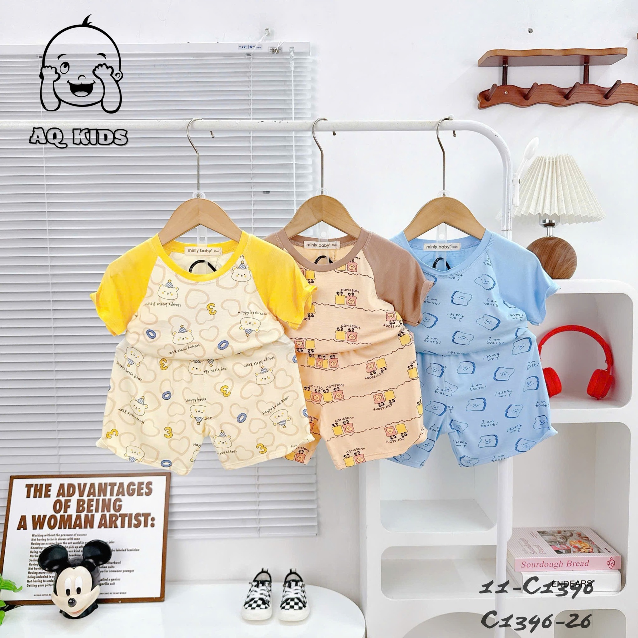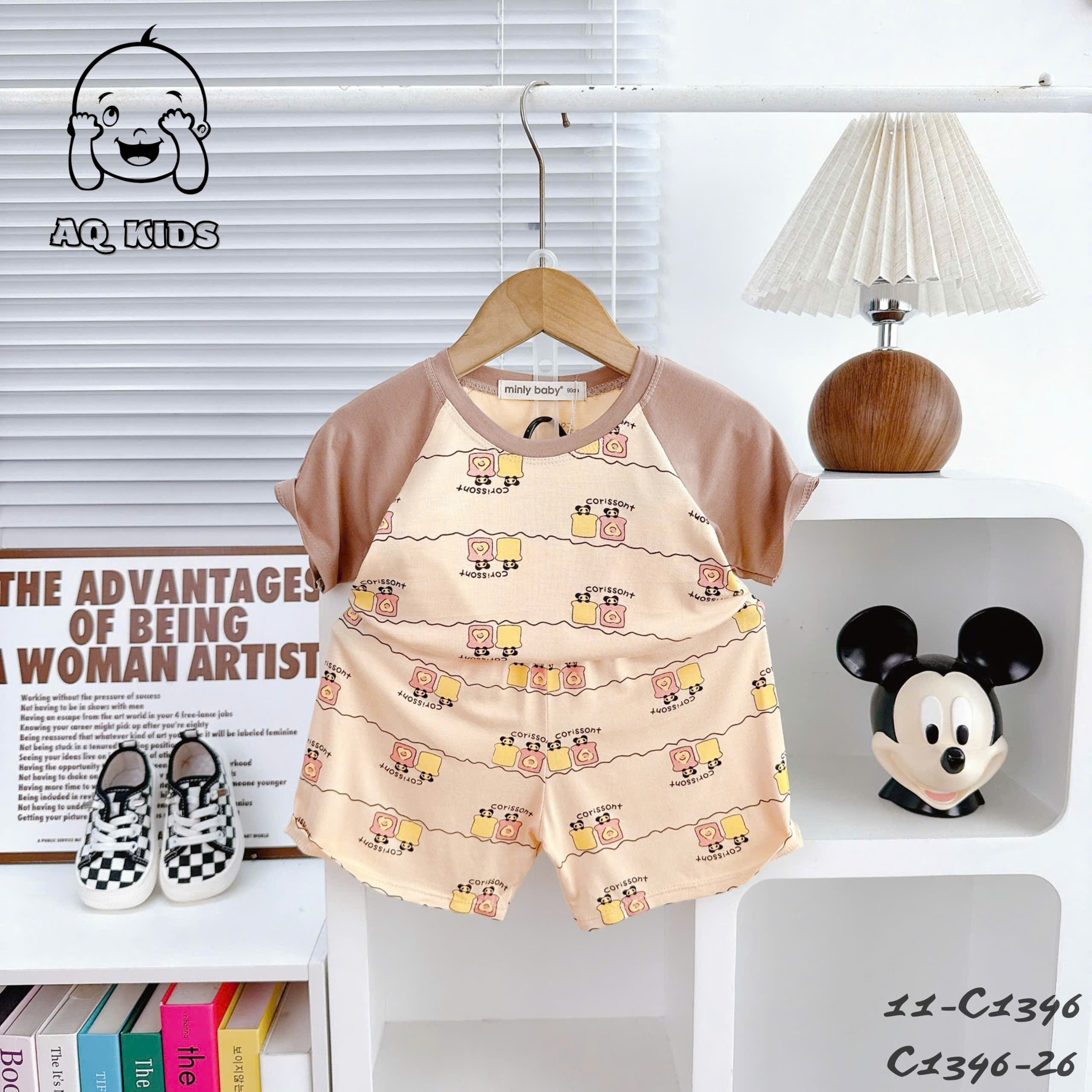 (New) Bộ cộc thun lạnh Minlybaby raglang in hoạ tiết – C1346 – BCIB49