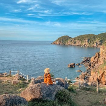 – Sau đó đi bộ xuống Bãi Môn, đoạn đường này ngoài gặp kha khá “mìn” thì sẽ có đoạn view ra biển cực kì đẹp luôn. Xuống tới Bãi Môn thì cũng rất vắng, rất dễ chụp hình ( ở đây k có chỗ thay đồ nên nếu xuống bơi thì mọi ng mặc sẵn bikini nhé ), ở Bãi Môn này mình cũng thấy mọi ng dựng lều cắm trại nữa. Ngoài ra mọi người có thể tới Bãi Tiên cũng cùng cung đường, khá xinh.