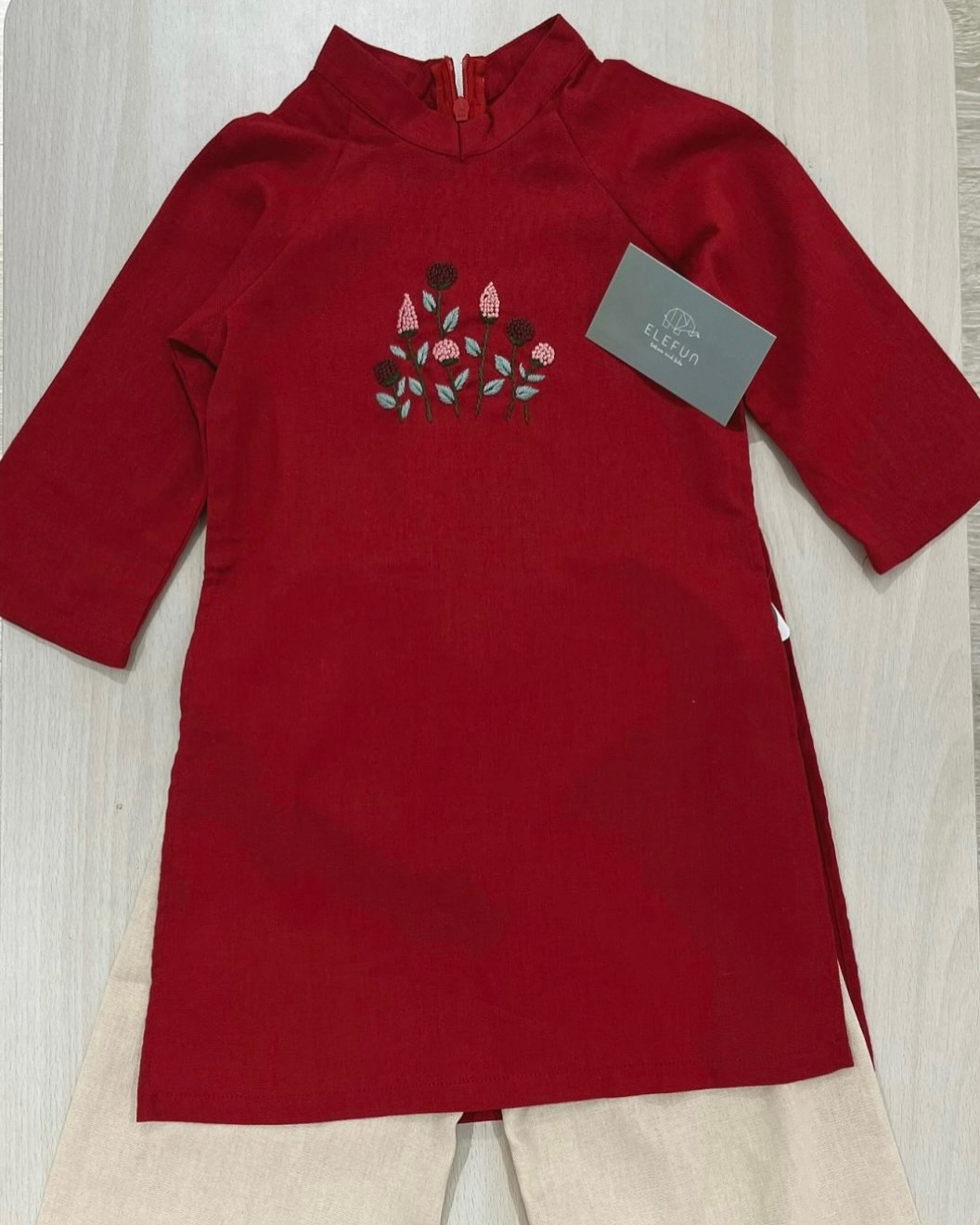 🌹 Áo dài bé gái màu đỏ thêu hoa: size 4