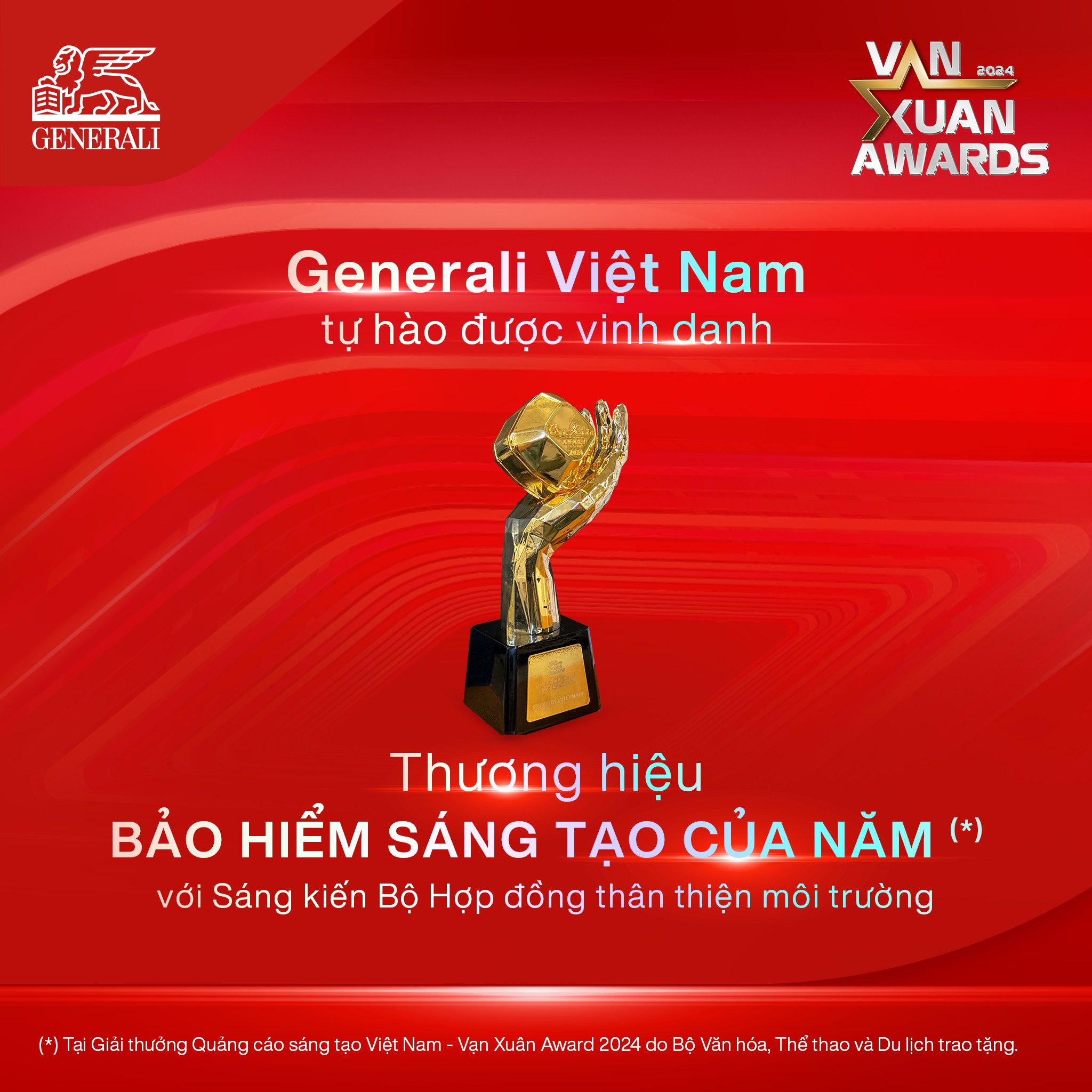 💖 Ngày 20/12, trong đêm Gala vinh danh Giải thưởng Quảng cáo Sáng tạo Việt Nam – Vạn Xuân Award 2024 tổ chức tại phố đi bộ Nguyễn Huệ, Generali Việt Nam đã vinh dự nhận danh hiệu “Thương hiệu bảo hiểm sáng tạo của năm” với sáng kiến Bộ Hợp đồng thân thiện môi trường.