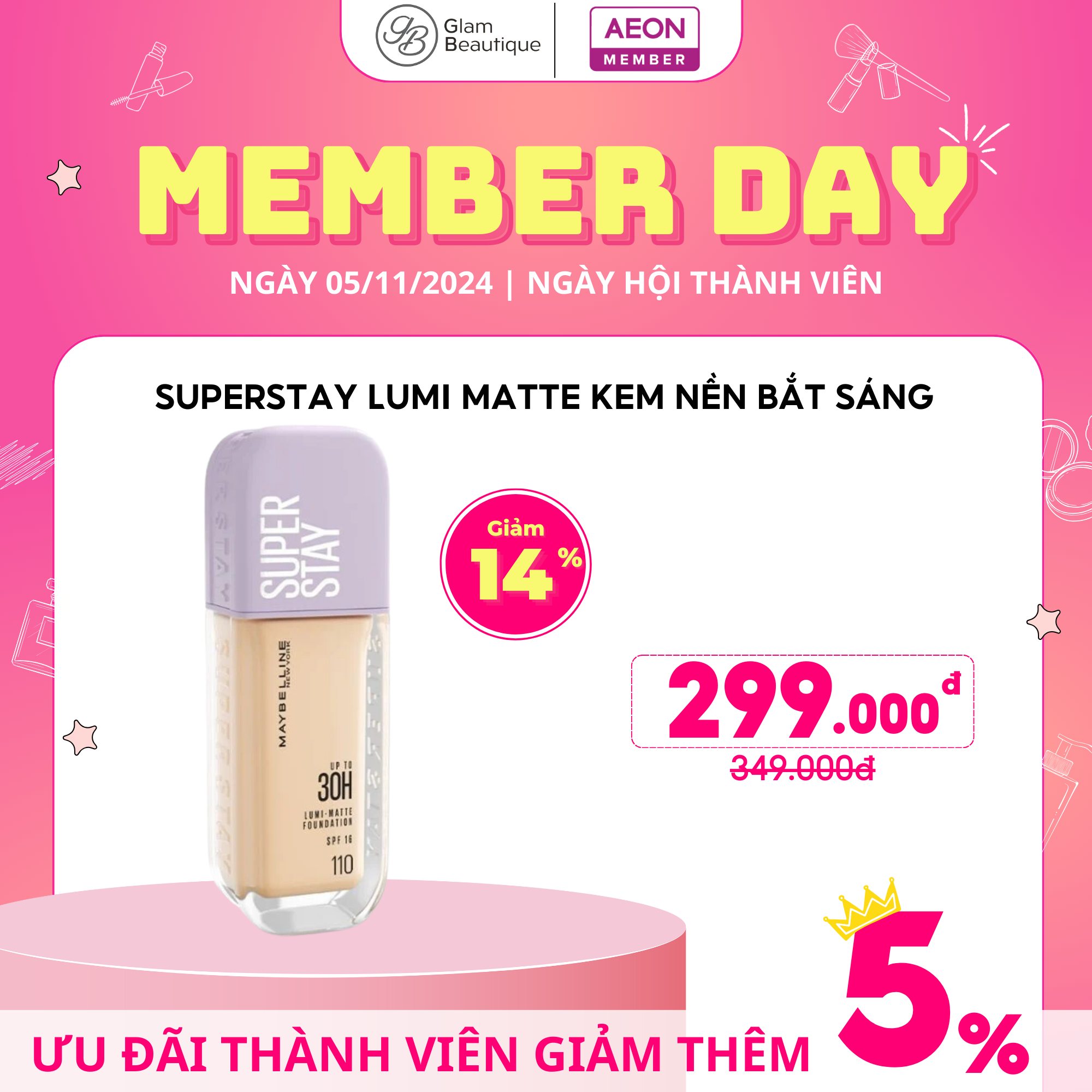 Đặc biệt, member còn được giảm thêm 5% vào ngày 05/11 nữa đó nha! ❣️❣️