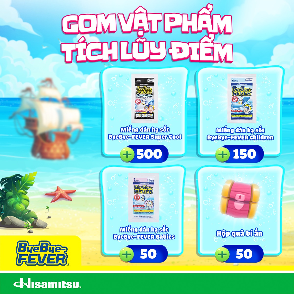 ✅ Bước 1: Mua miếng dán hạ sốt ByeBye-FEVER tại chuỗi nhà thuốc Pharmacity hoặc các nhà thuốc trong danh sách bit.ly/bbf-nttt2025-hisamitsuvn để nhận mã tham gia.