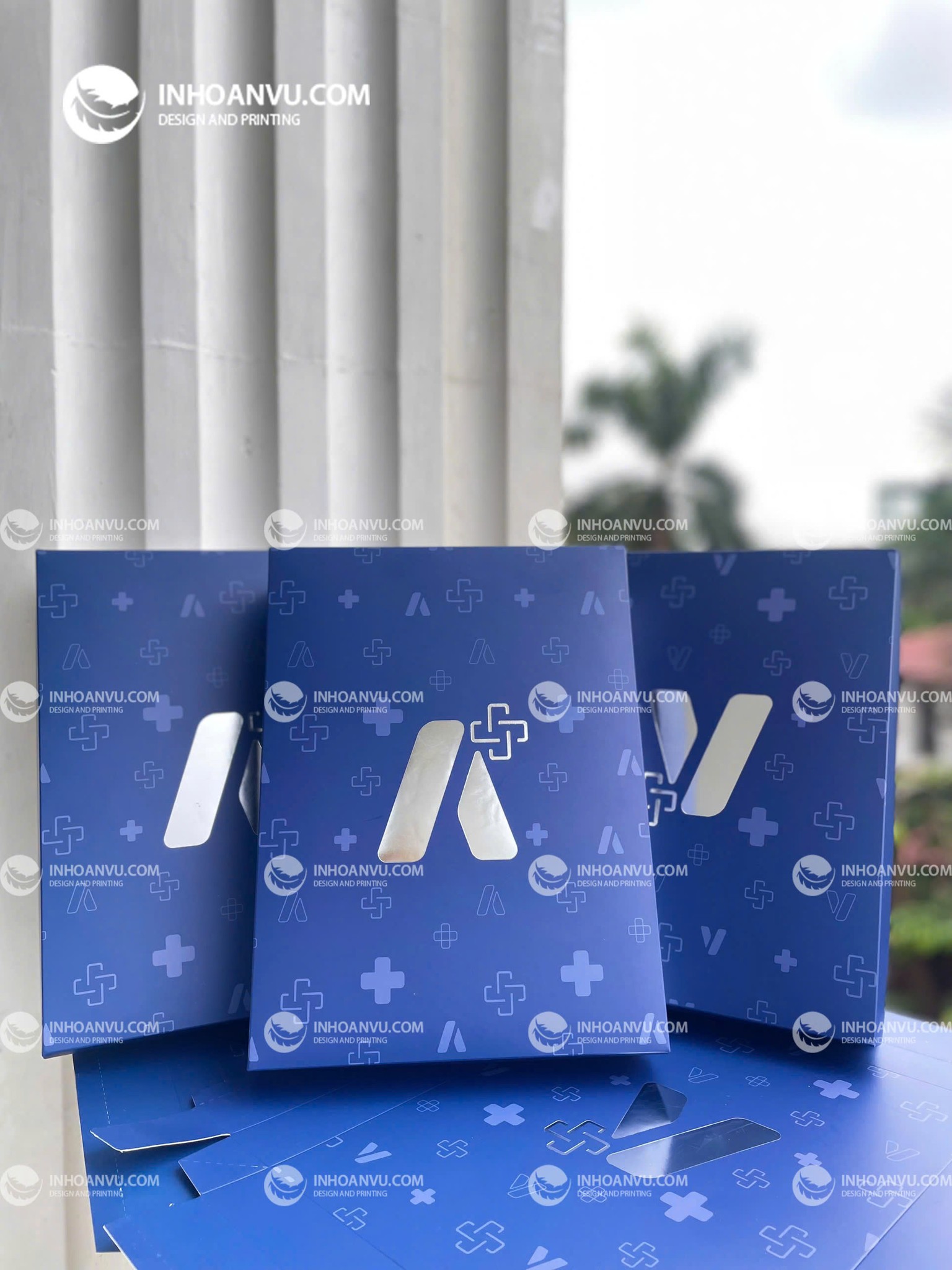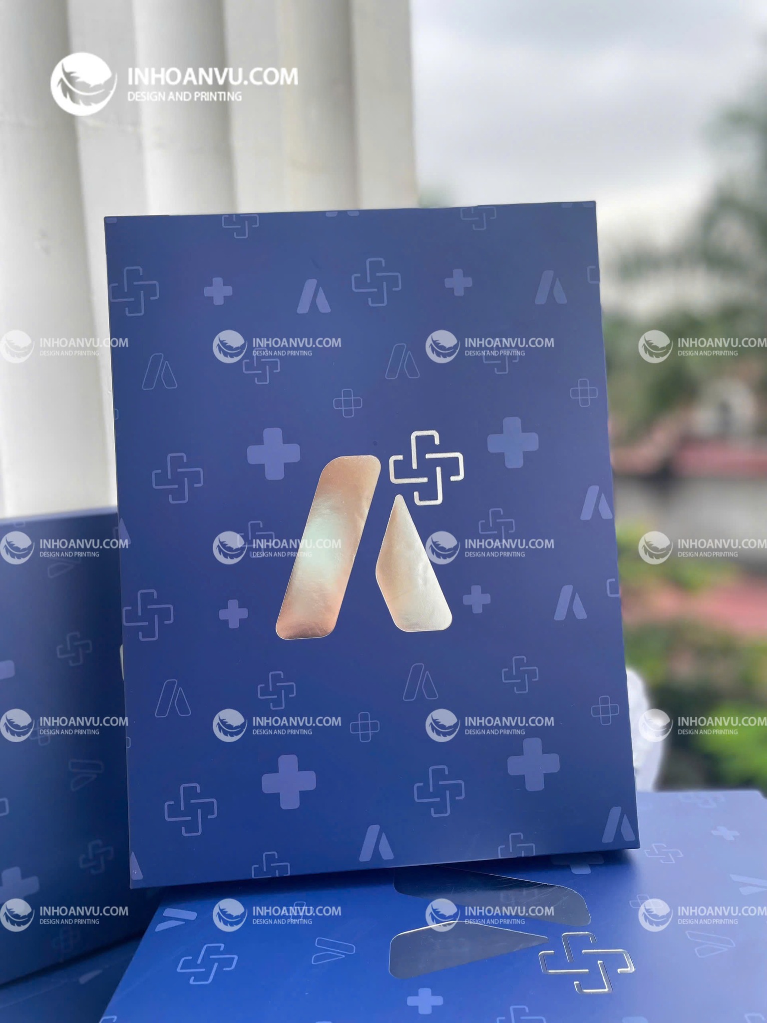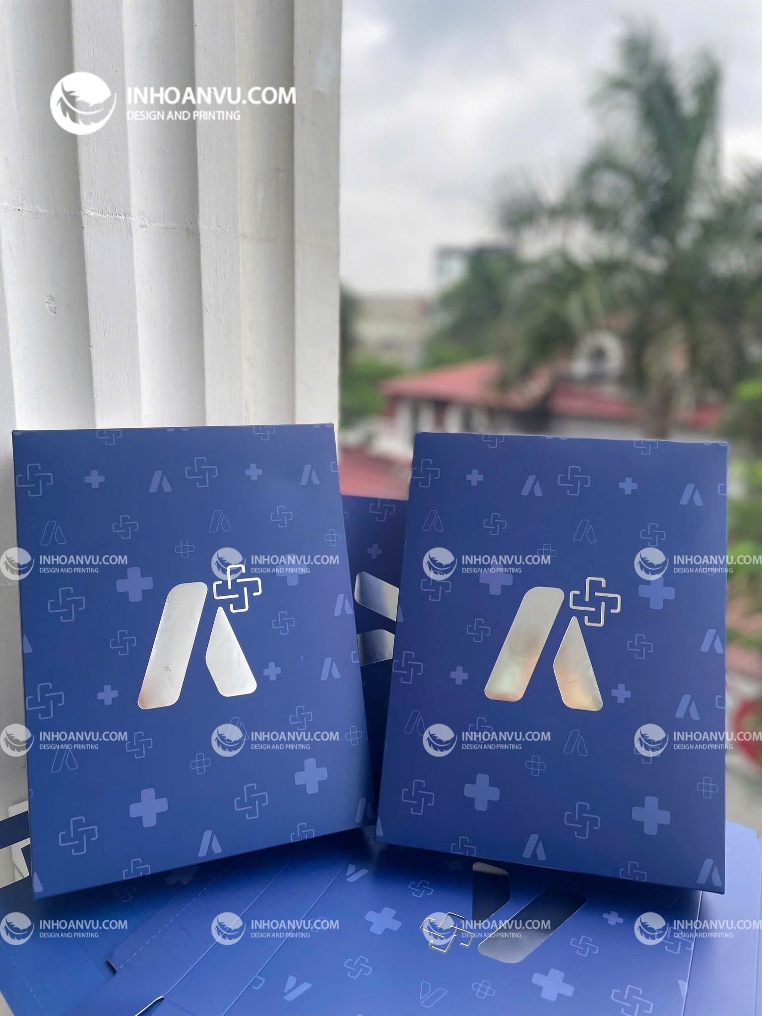 🔥 Hộp Ivory 2 nắp âm dương của doanh nghiệp #ALPHA được thiết kế nền xanh thương hiệu, logo được ép kim nhũ bạc nổi bật ấn tượng.