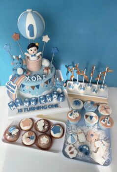 Bánh 1 tầng size 20cm và Set mini 24 bánh phù hợp chủ đề và màu sắc tiệc