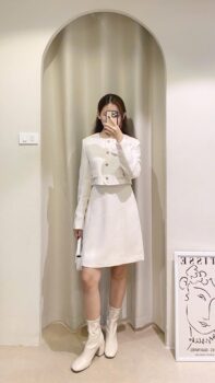 Trắng tinh khôi , mẫu này mặc cực gọn xinh và tiểu thư , chị e nào cần chiếc váy xinh đi cưới , đi sự kiện , đi làm , đi họp …😉 em mời ạ