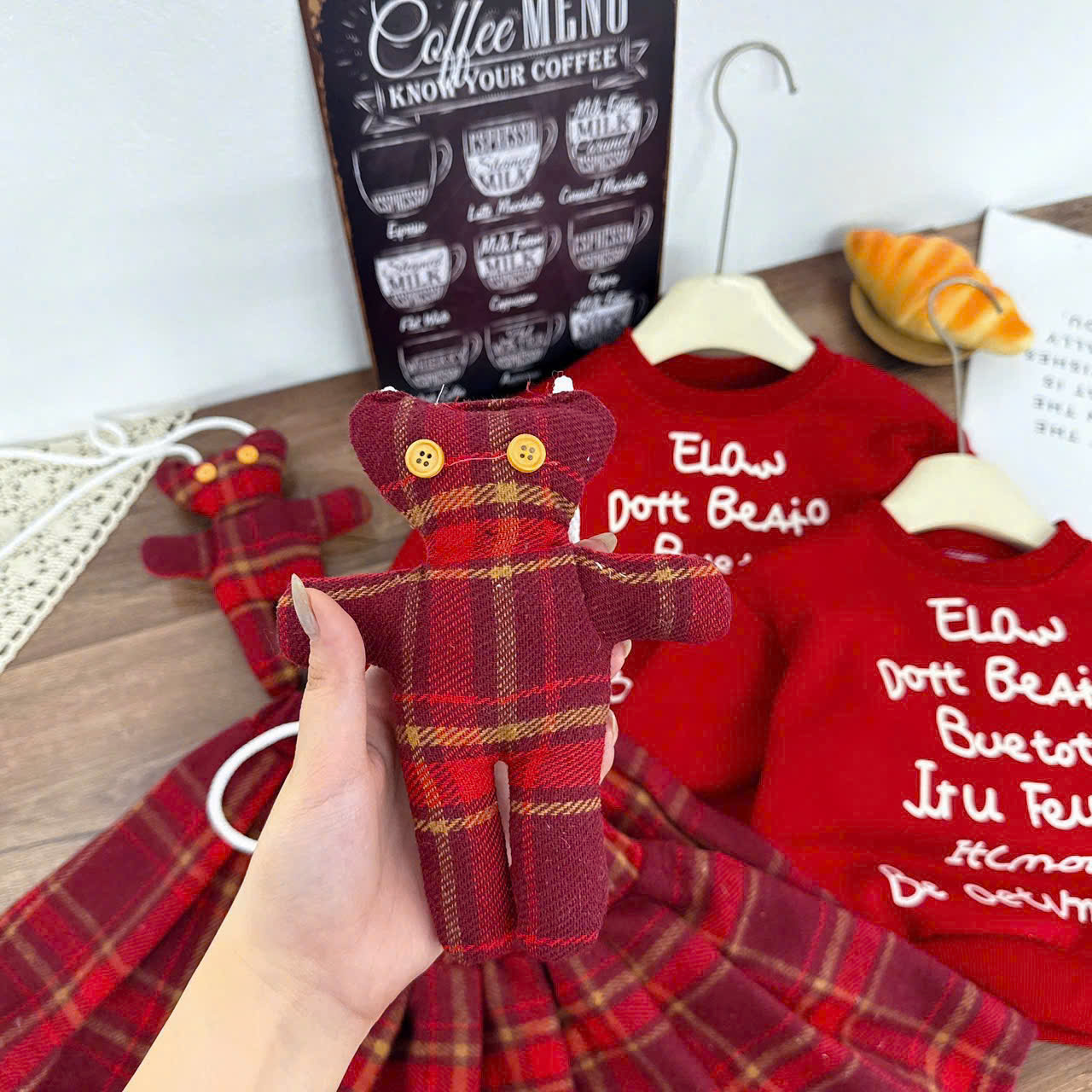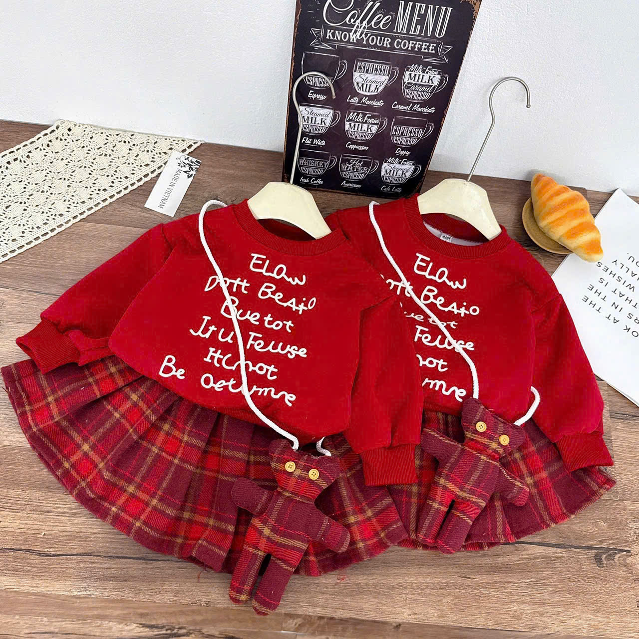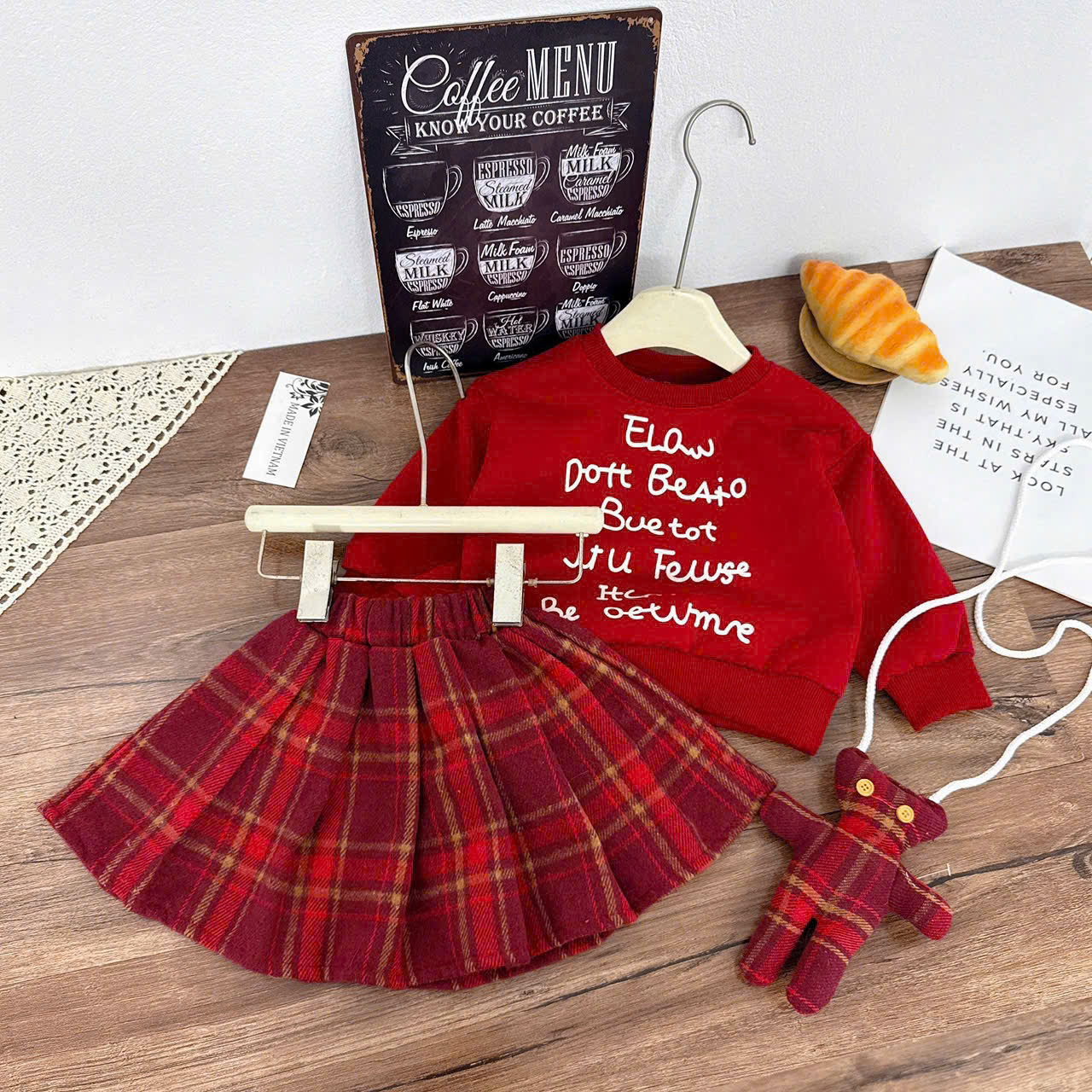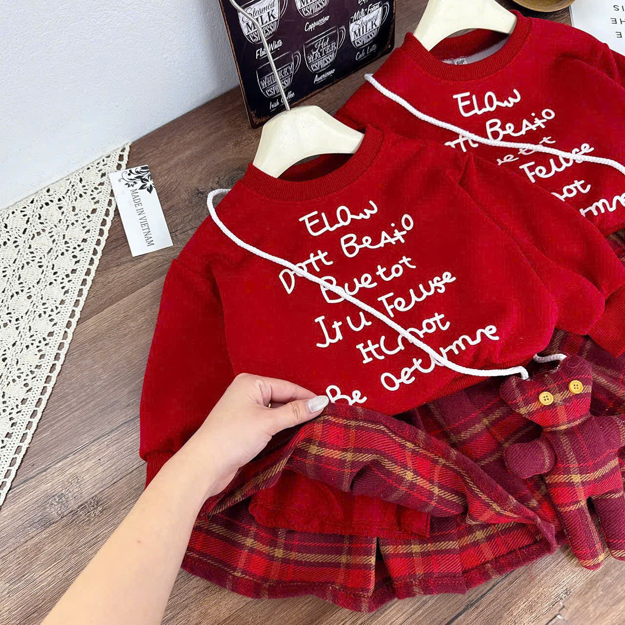 👉Chân Váy Xếp Ly Kẻ Caro Đỏ Classic+ Tặng Kèm Gấu Bông