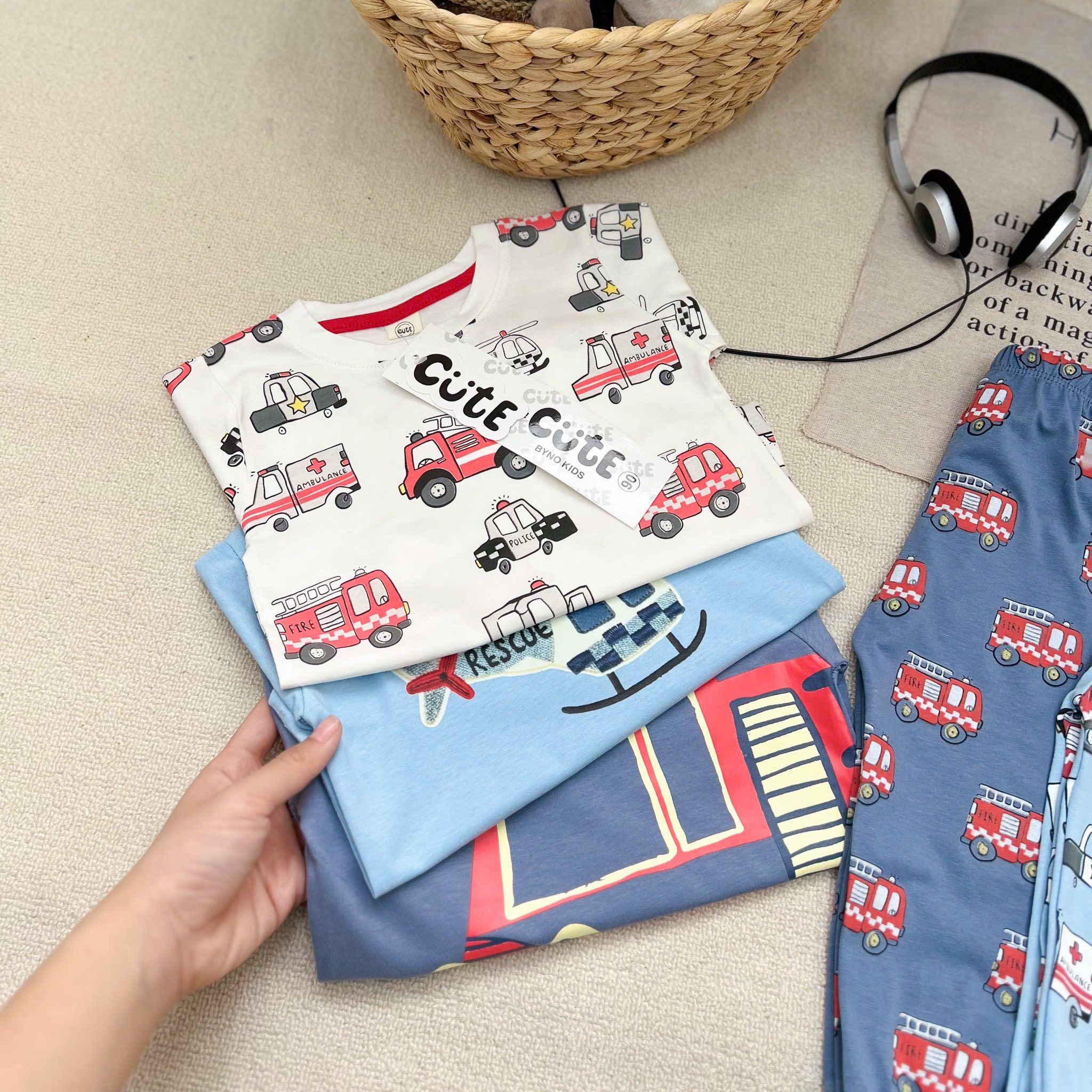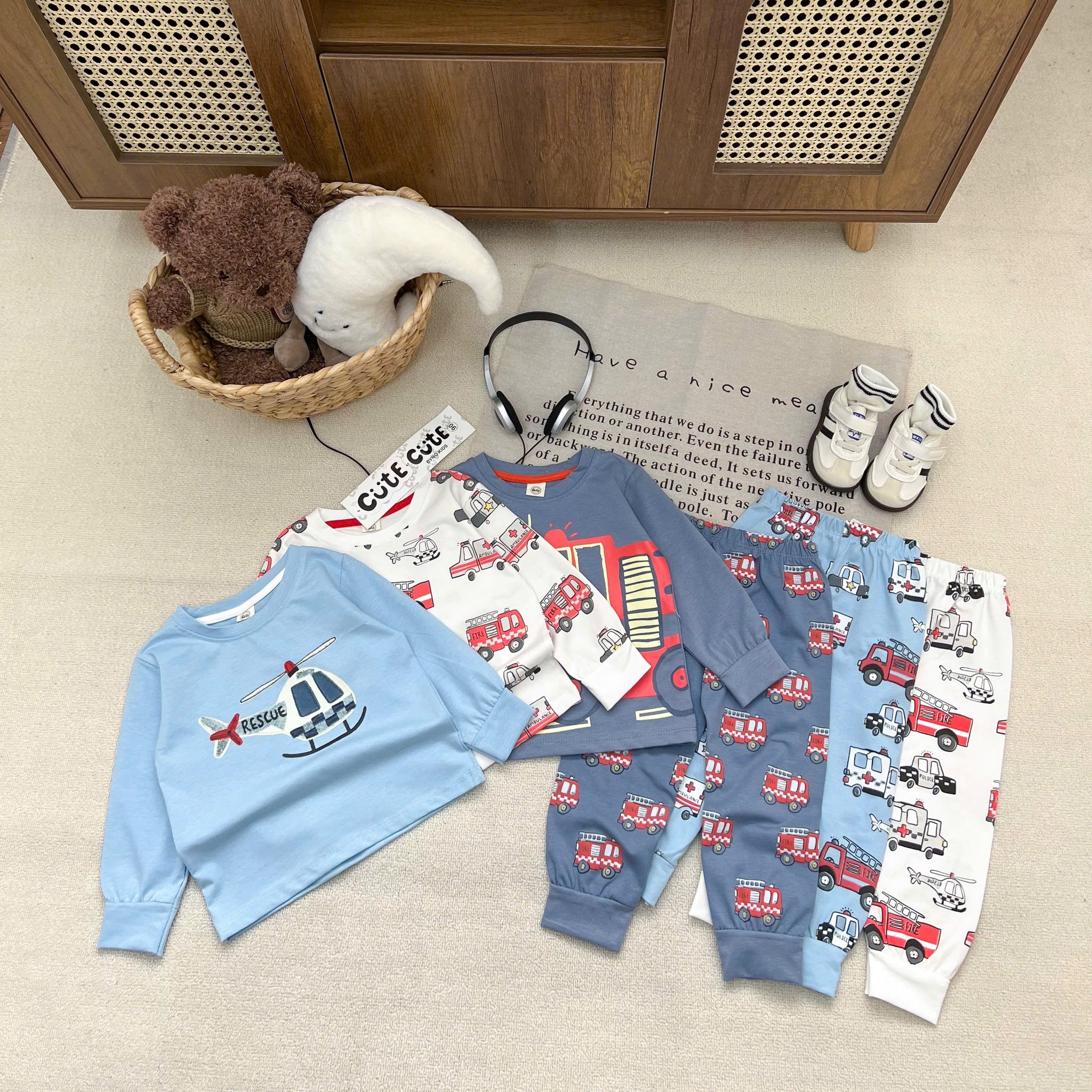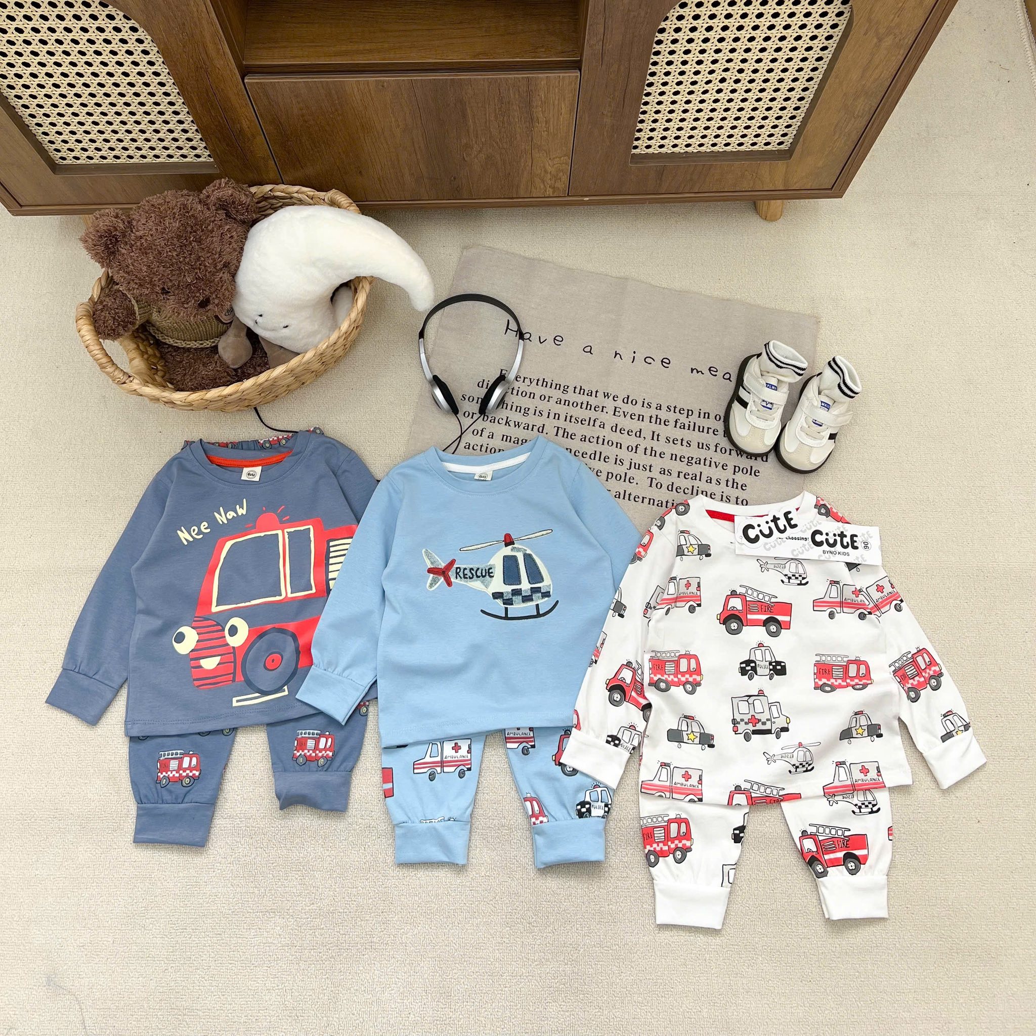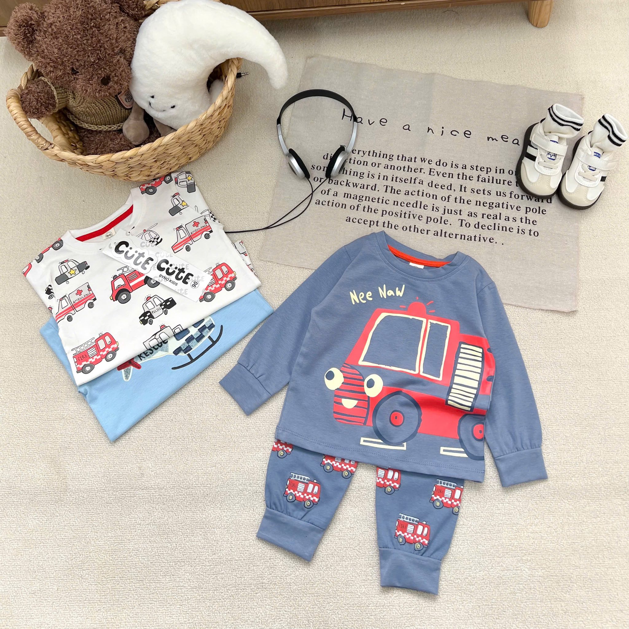 Mưa se se lạnh em lên set 3 bộ oto dài tay in tràn cho bé trai