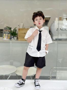 Xả #130k còn 12-18m, 2y, 3y, 4y (9-17kg) 𝐒𝐄𝐓 𝐒𝐎̛ 𝐌𝐈 𝟑 𝐂𝐇𝐈 𝐓𝐈𝐄̂́𝐓 𝐗𝐈̣𝐍 𝐗𝐎̀ 😎😎😎 Chất liệu áo sơ mi cao cấp, thấm hút mồ hôi, quần giả bò mềm, lên form cực đẹp. Điểm nhấn in chữ kèm cà vạt, lên dáng như trai Hàn,