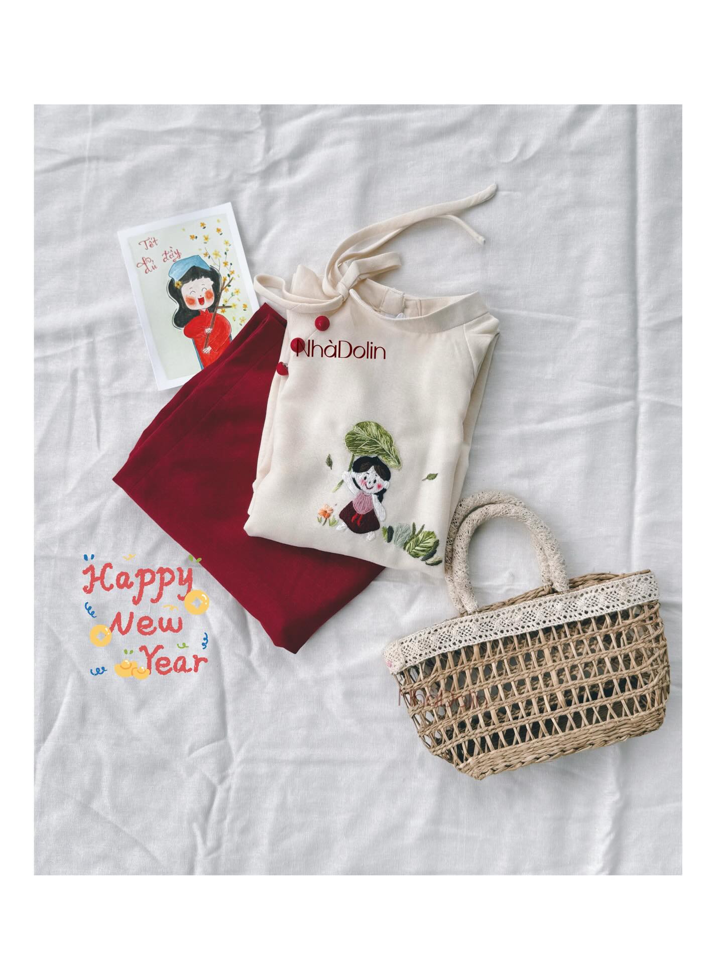 ![[🆕🇻🇳] Nhà Dolin – Chuyên may tất tần tật mọi thứ xinh đẹp nha, cho bé, cho mẹ và cho cả nhà 🧑🧒❤️️👶⭐️ Thật ra trời âm u lắm, canh đúng ngọ nó hửng tí mới lôi đồ ra chụp.