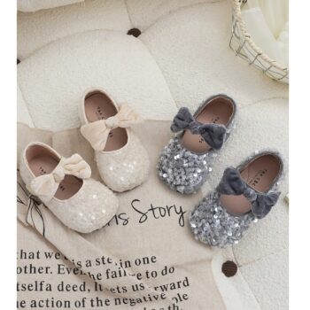 ![[🆕🇻🇳] Penguin Bebe – Chuyên order cho bé 🧑🧒❤️️👶⭐️ 1 em giày búp bê bling bling mix nơ nhung xinh xắn quá các mom uiii. 2 màu đẹp quá trờiiii