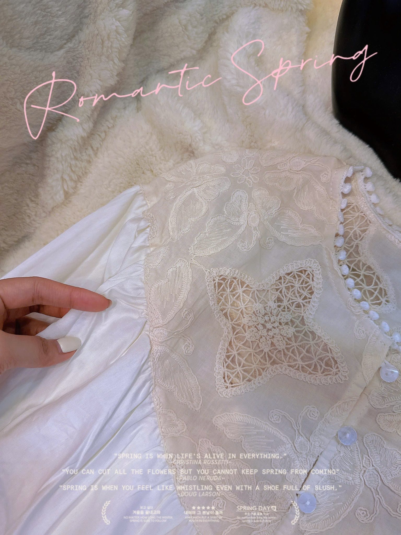 Thiết kế thêu ren phối tim nổi bật, cúc ngọc xinh sang 💕