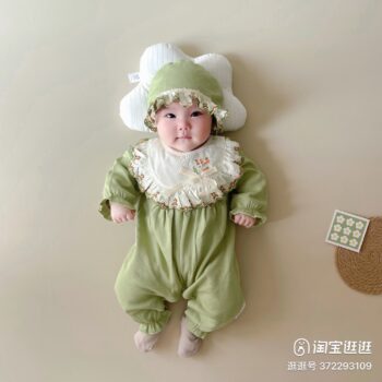 ❄️ Tên sản phẩm: Romper + mũ xanh lá, yếm trắng, hoa thêu.