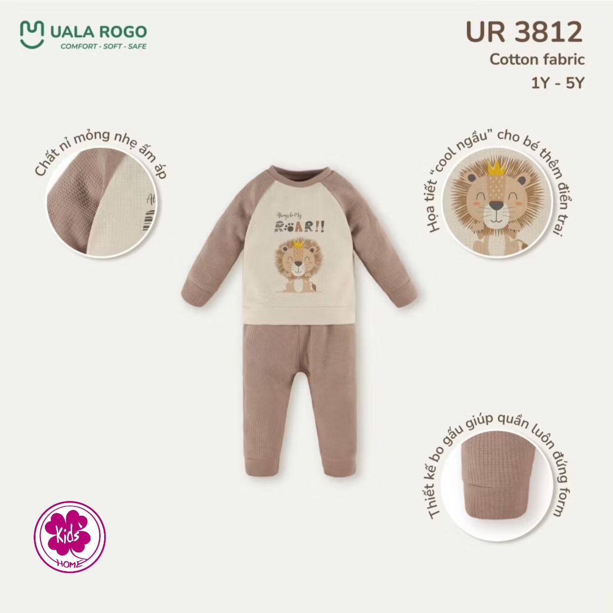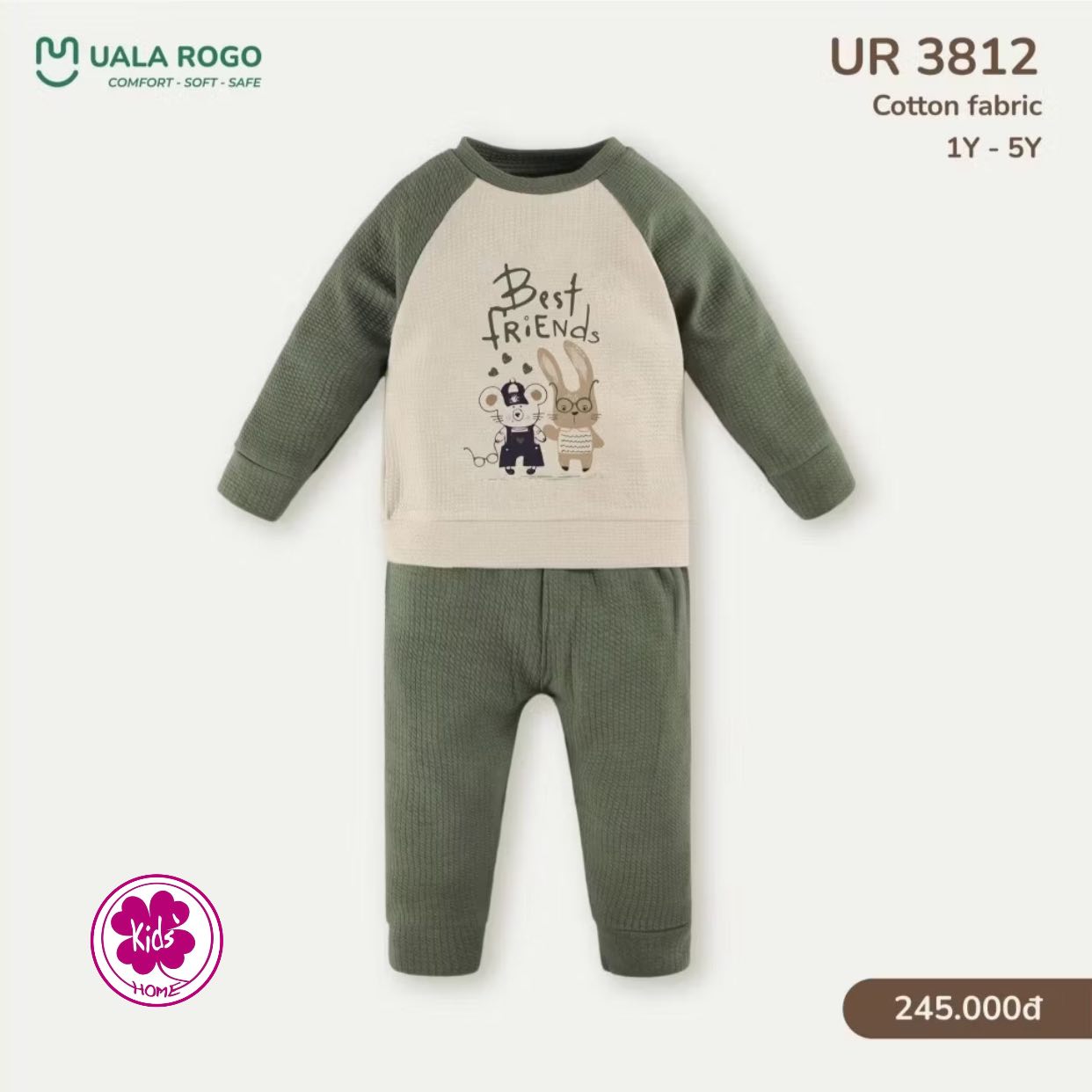 Tên sản phẩm: Đồ bộ bé trai Ualarogo dài tay mỏng 1-5 tuổi vải Cotton nỉ co giãn mềm mại bo gấu 3812