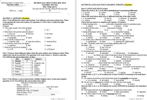 ĐỀ THI HẾT HK2 – Tiếng Anh 11 – Global success