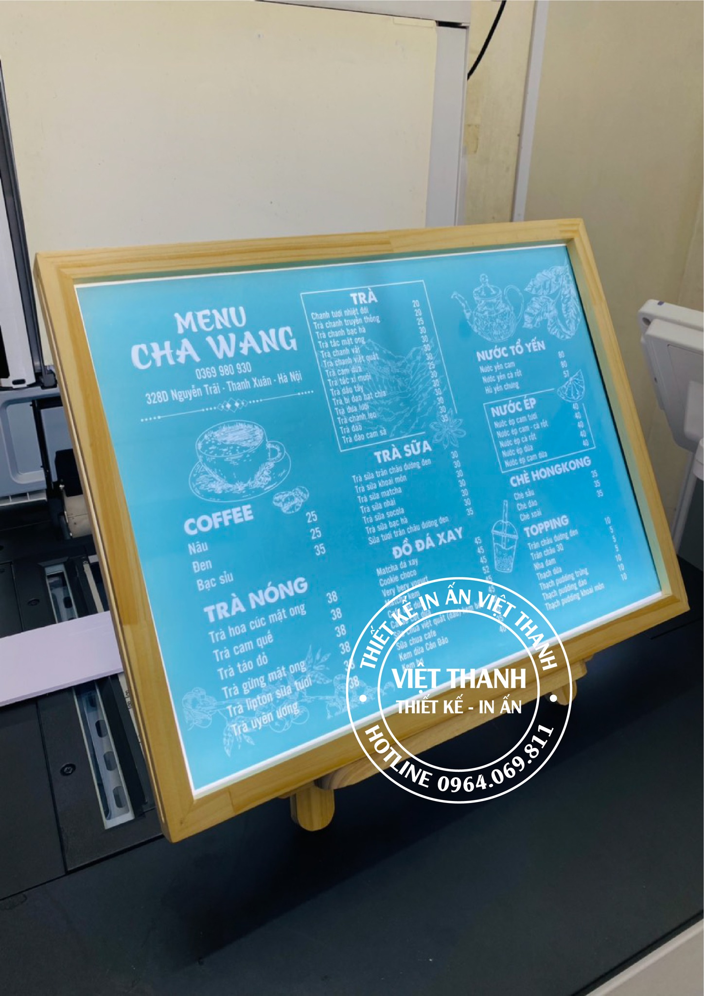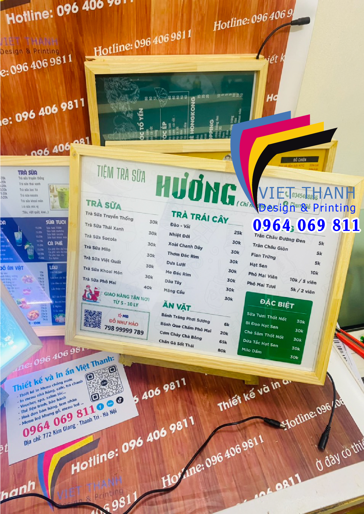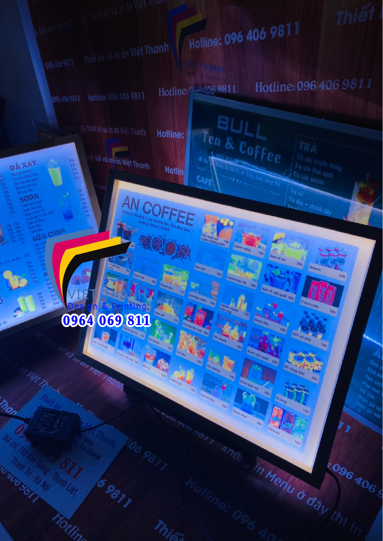 ![[🆕🇻🇳] Thiết kế và In ấn Việt Thanh – chuyên in menu nhựa, menu bìa da, menu spa, salon, menu fomex, card, menu led gỗ 🎨 Top1Designs ✨ Menu đèn led để quầy cho quán trà sữa, cafe
