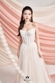 Thiết kế cup ngực cùng corset siết eo, đính kết đá trên toàn chiếc váy khiến cô dâu trở lên lấp lánh, thêm điểm nhấn kết hoa 3D đã tôn trọn lên vẻ đẹp của mỗi nàng dâu .Dù nàng là cô gái theo đuổi phong cách nhẹ nhàng hay cá tính, khi đến với 𝐌𝐢𝐧𝐳𝐲 mọi yêu cầu về một chiếc váy trong mơ đều sẽ thành hiện thực !