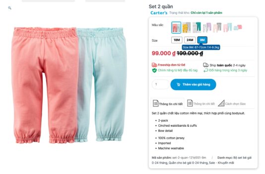 ![[🆕🇻🇳] Tigerkidshop.com – Quần áo trẻ em nhập Mỹ 🧑🧒❤️️👶⭐️ 99k/ set 2 quần:
