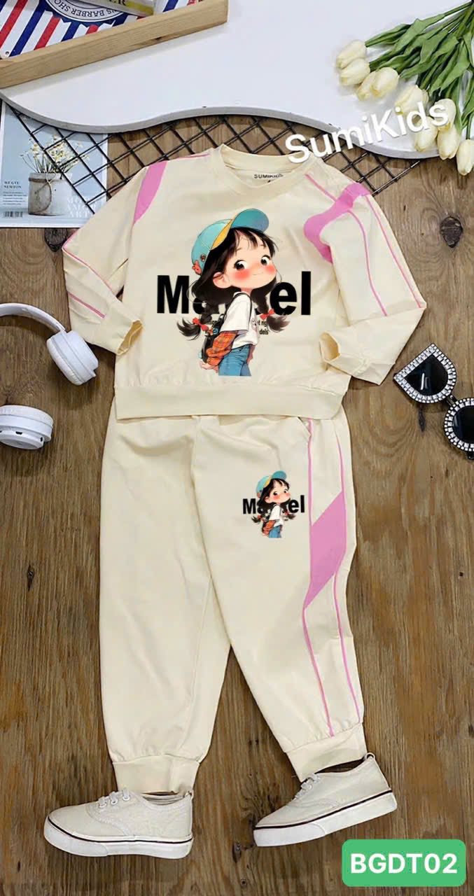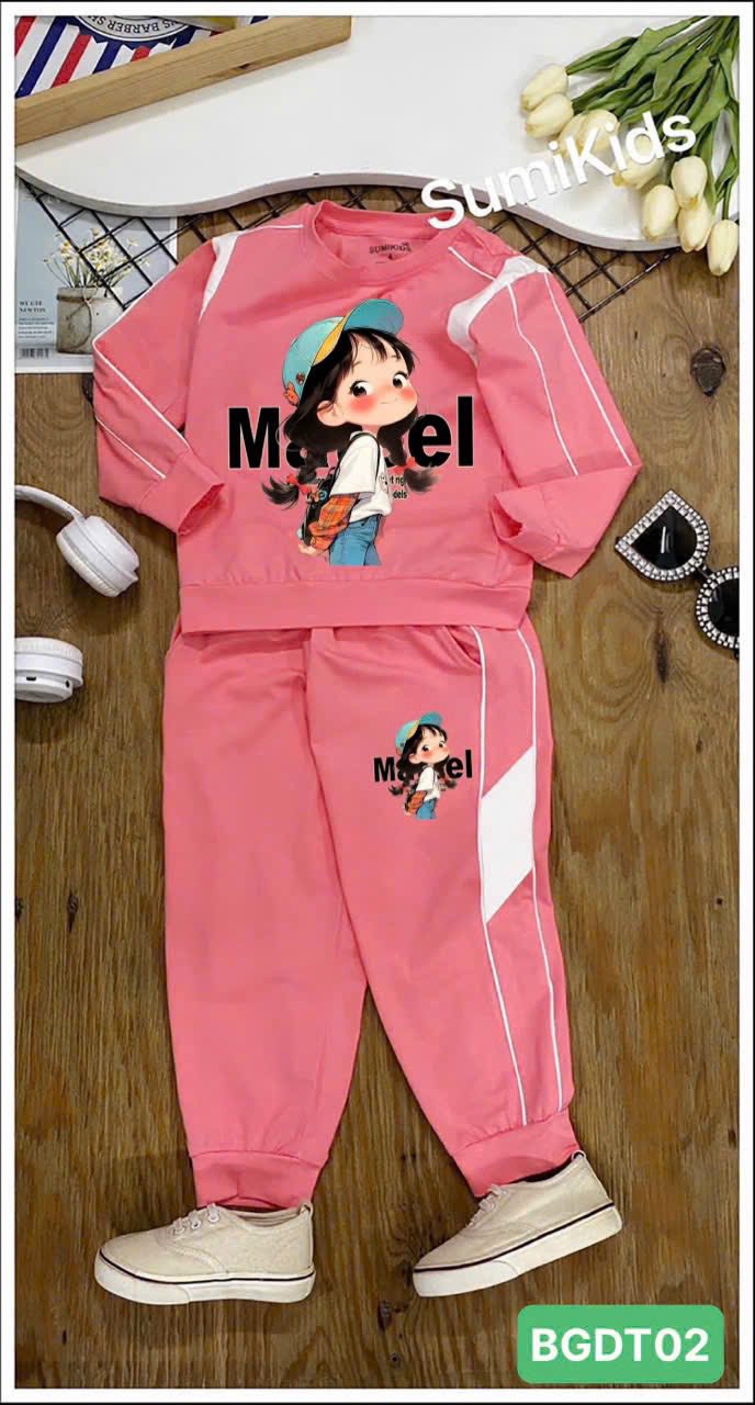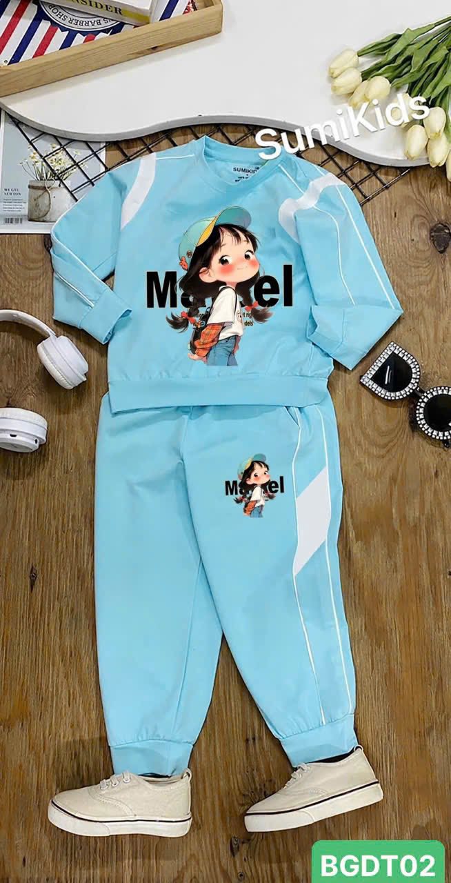 – Nguyên bộ may bằng chất thun 100% cotton 4c mền mịn, áo tay phối vải kẹp lé, hình in Pet sắc nét. Quần 2 bên ống chạy lé, phối vải sườn, hình in Pet