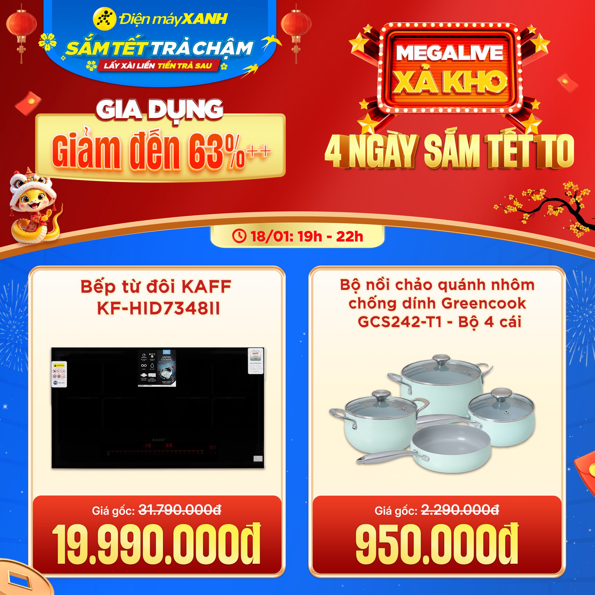 [🆕🇻🇳] Điện máy XANH (dienmayxanh.com) ♥️️ Top1Index 📚 CHỈ CÒN 4 TIẾNG – SẴN SÀNG CHO LIVESTREAM SIÊU SALE! MEGA LIVE XẢ KHO – 4 NGÀY SẮM TẾT TO GIA DỤNG GIẢM ĐẾN 63%++ Hôm nay: 19h – 22h ƯU ĐÃI CỰC HOT , shares-0✔️ , likes-0❤️️ , date-2025-01-18 22:00:15🇻🇳🇻🇳🇻🇳📰🆕