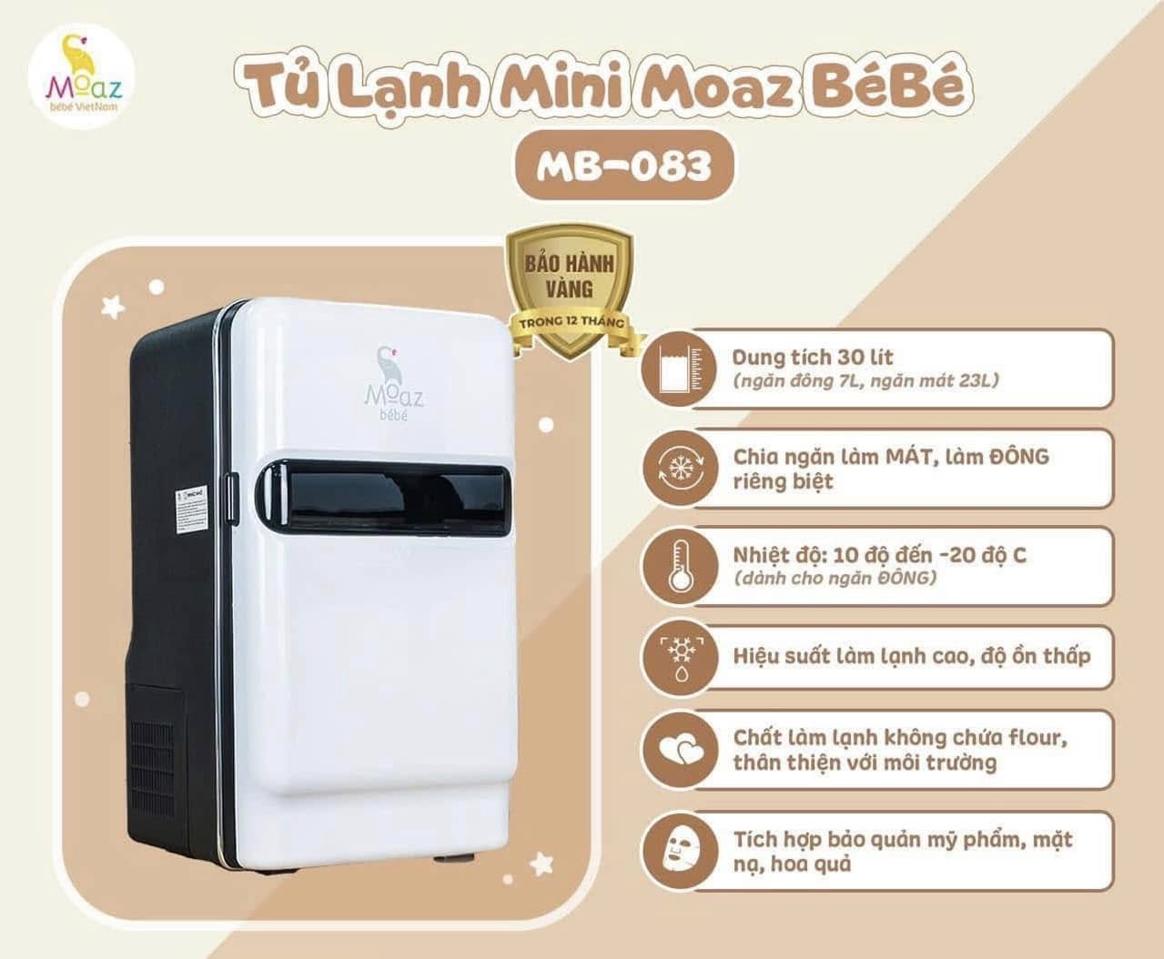 Nếu ba mẹ đang tìm một chiếc tủ lạnh trữ sữa chia ngăn đông và ngăn mát riêng biệt thì 𝐓𝐮̉ 𝐥𝐚̣𝐧𝐡 𝐦𝐢𝐧𝐢 𝐌𝐁-𝟎𝟖𝟑 của Moaz BéBé sẽ giải quyết bài toán này một cách xuất sắc. Hãy cùng Moaz BéBé khám phá kỹ hơn về chiếc tủ lạnh MB-083 nhé!