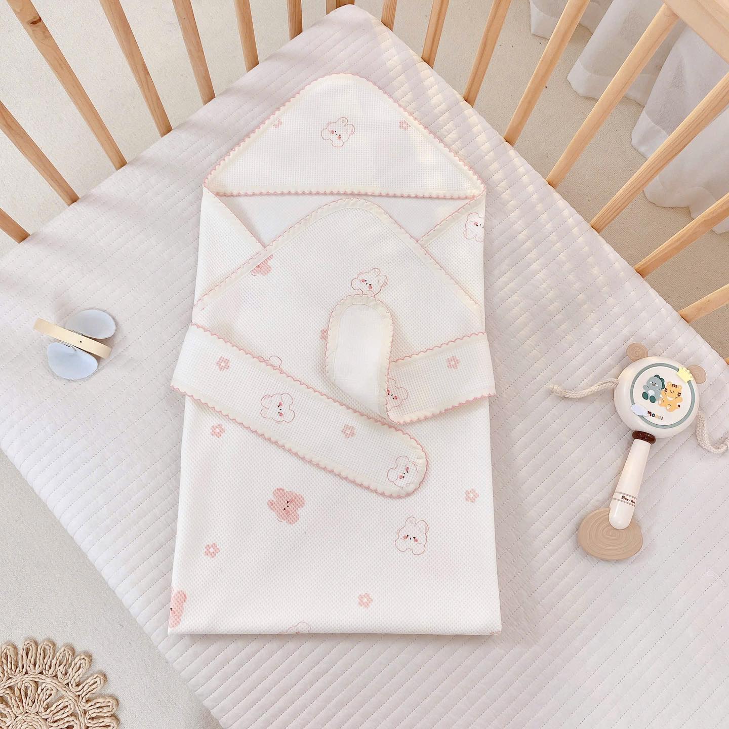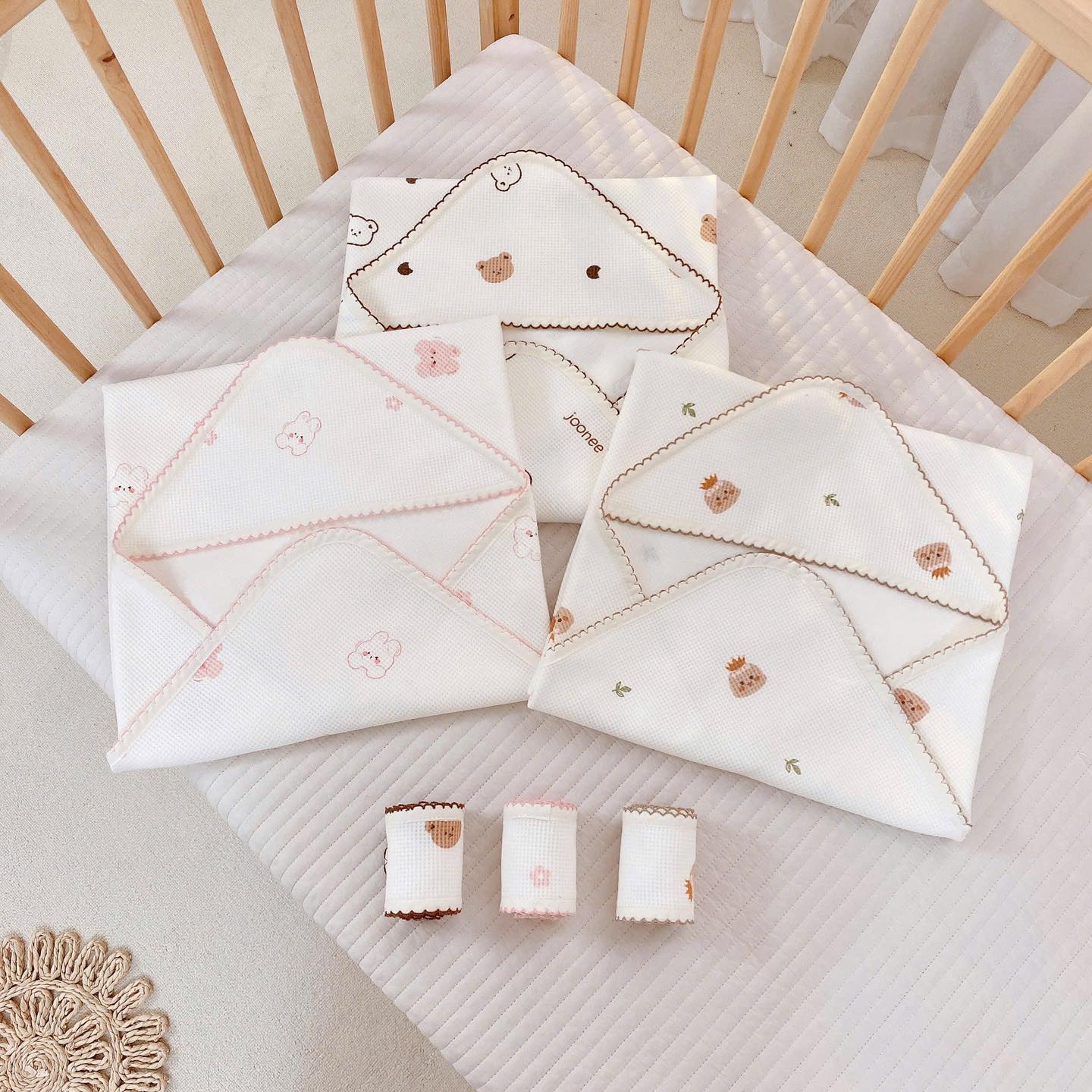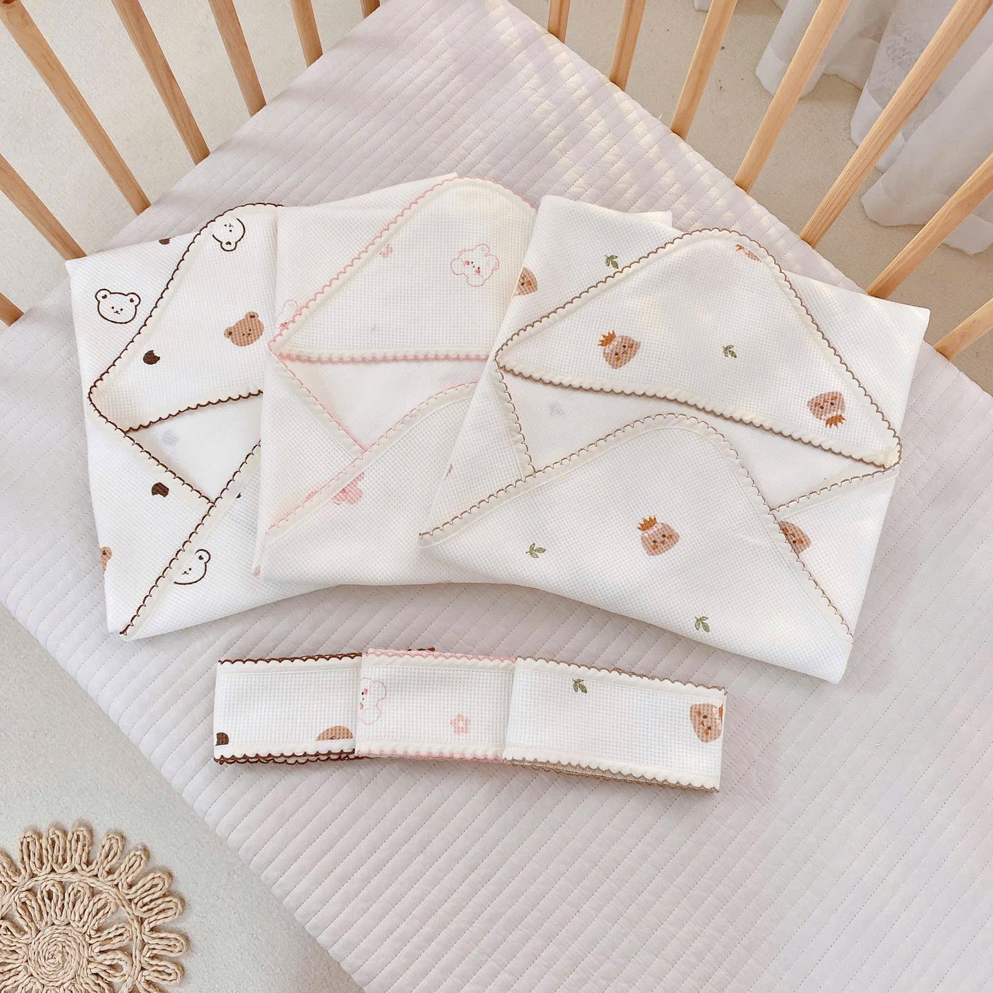 Ủ choàng chất liệu cotton waffle hoạ tiết Monona x Joonee chào mừng bé yêu