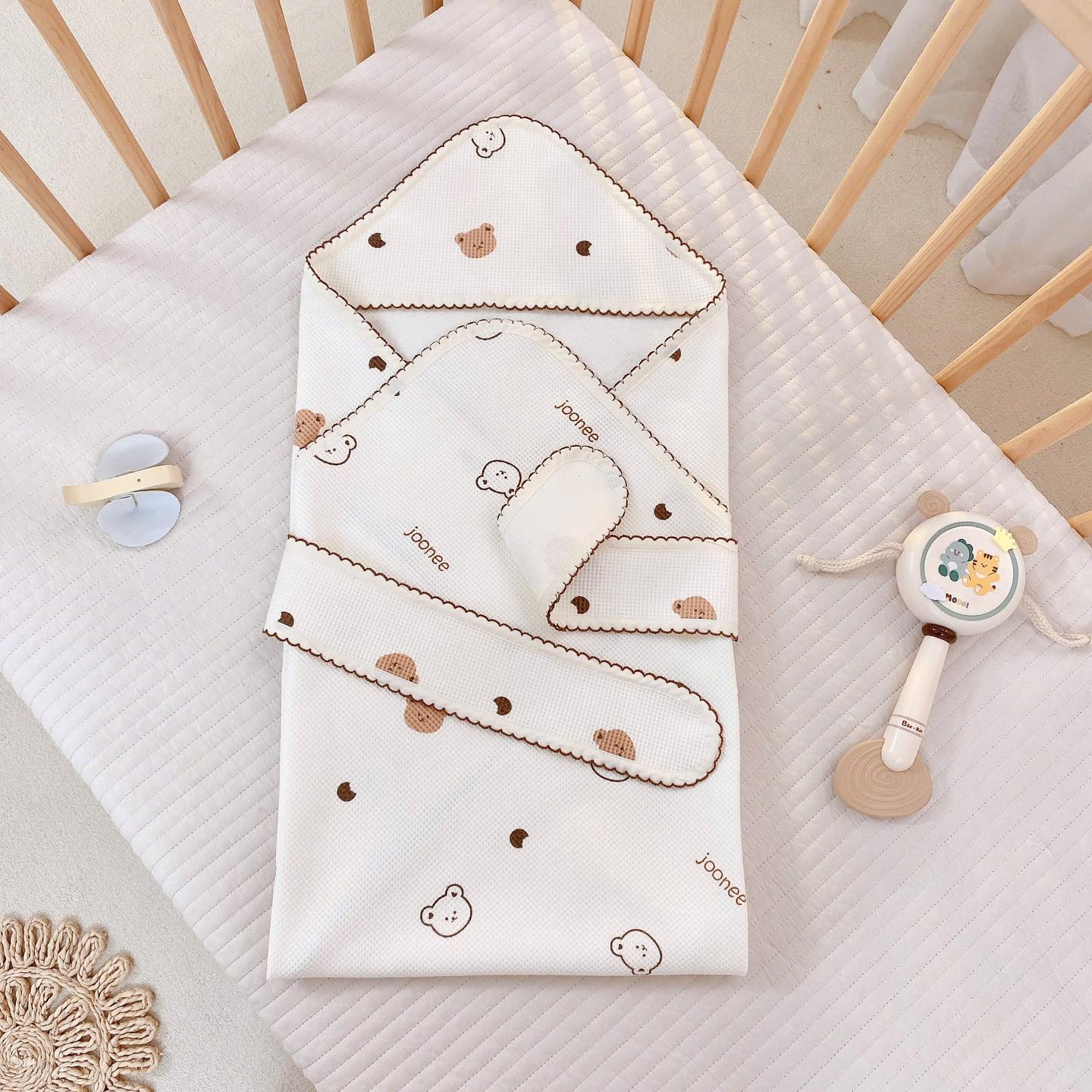 #Ủ #choàng #chất #liệu #cotton #waffle #hoạ #tiết #Monona #Joonee #chào #mừng #bé #yêu #Sử #dụng #đón #bé #lúc #mới #sinh #ủ #choàng #bé #đi #ngoài #sau #khi #tắm #cực #tiện #lợi