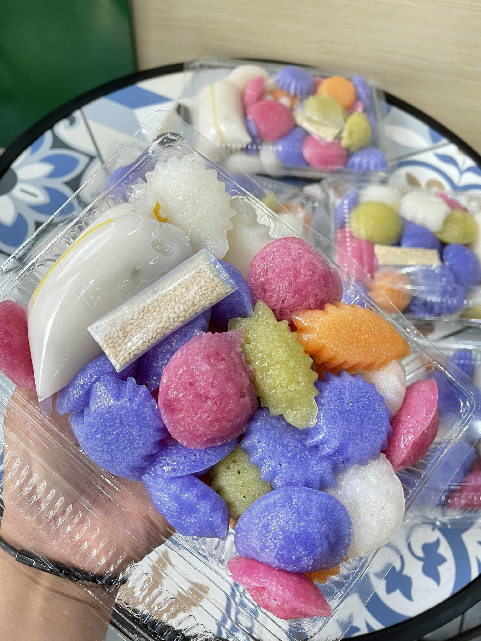 👉Bánh ăn cơ bản đã ngon rồi, nay shop kèm thêm mè rang và nước cốt để khách ăn càng ghiền hơn