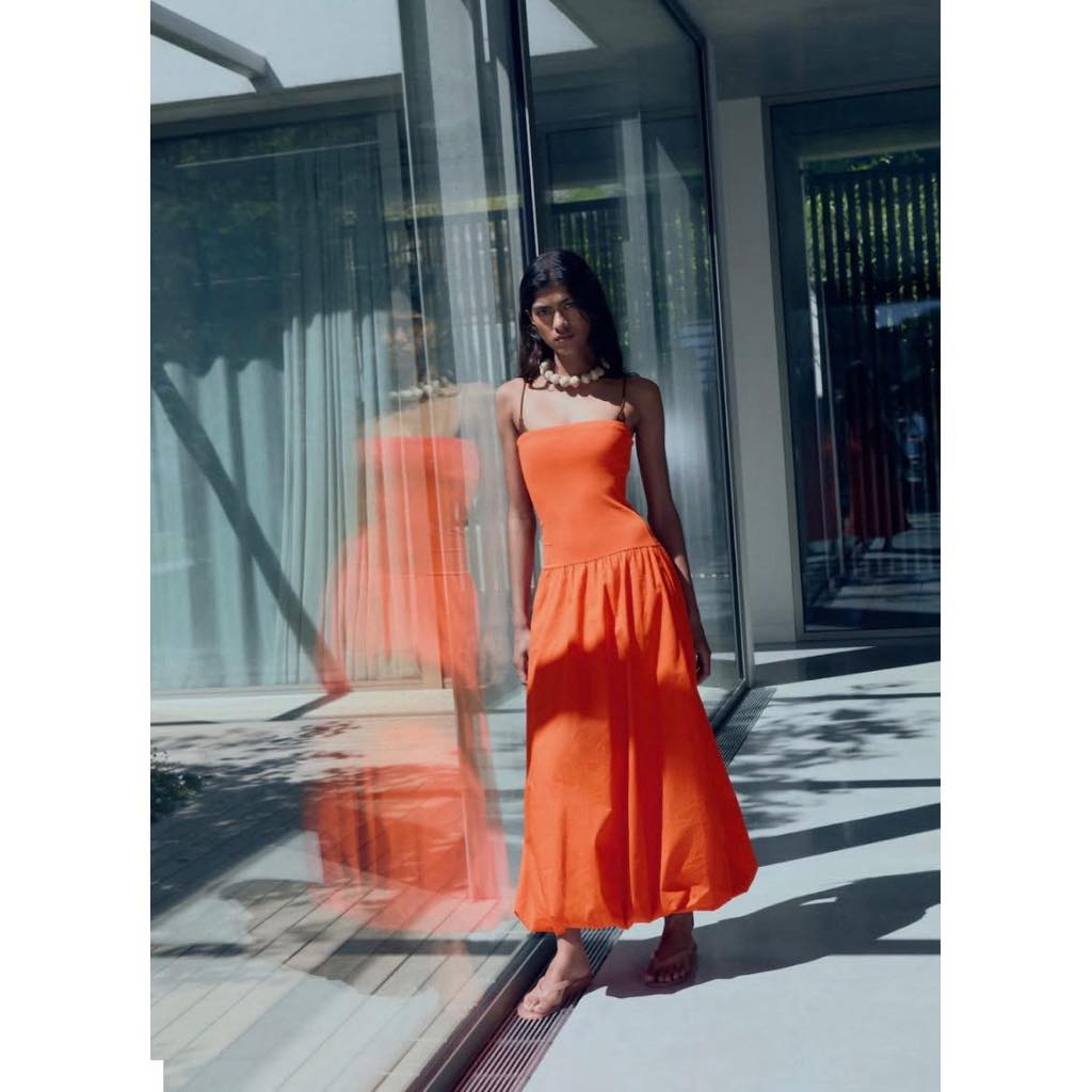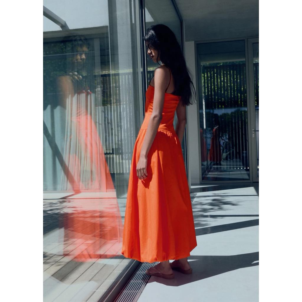 Rực rỡ nổi bật,Màu cam siêu cháy, chất liệu cotton mát mẻ, phần ngực là thun co giãn thoải mái. Mango.