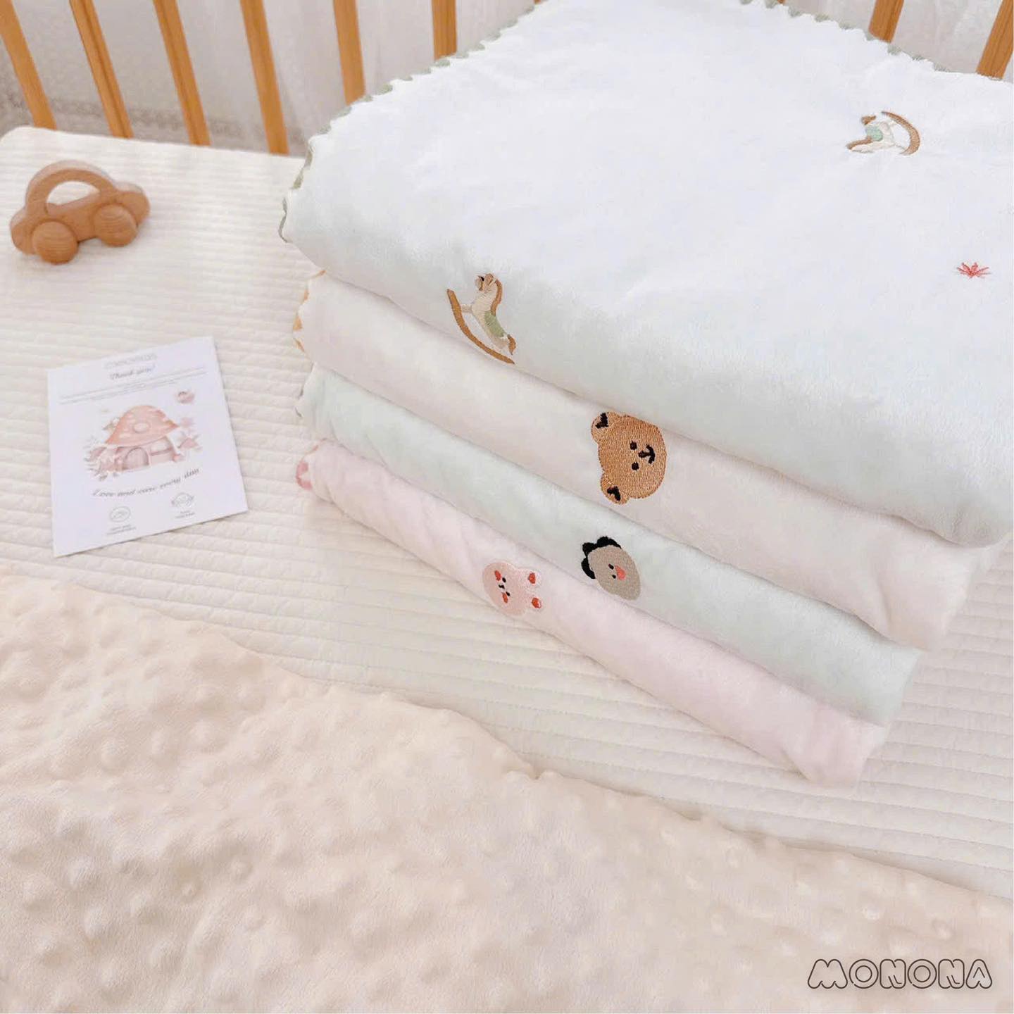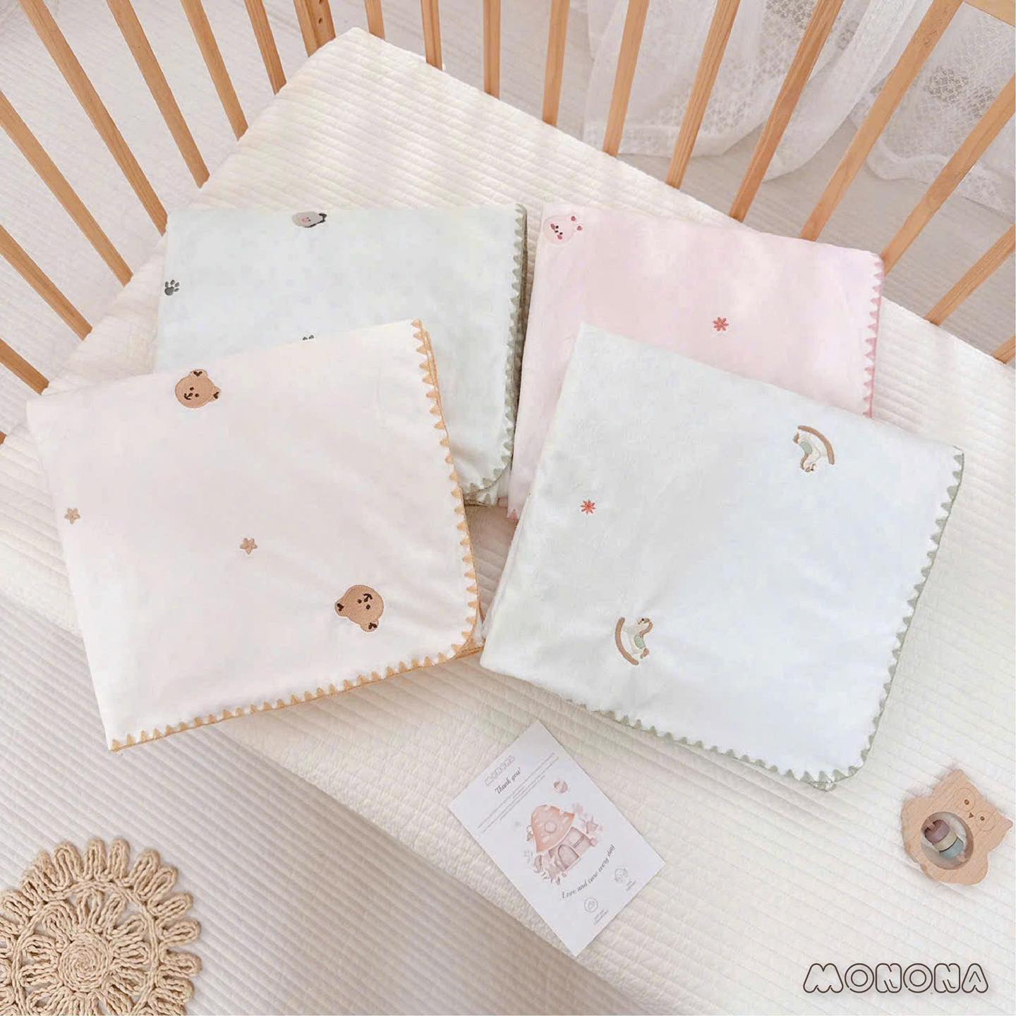 🎀 Hoạ tiết chăn: thỏ, gấu, khủng long, ngựa