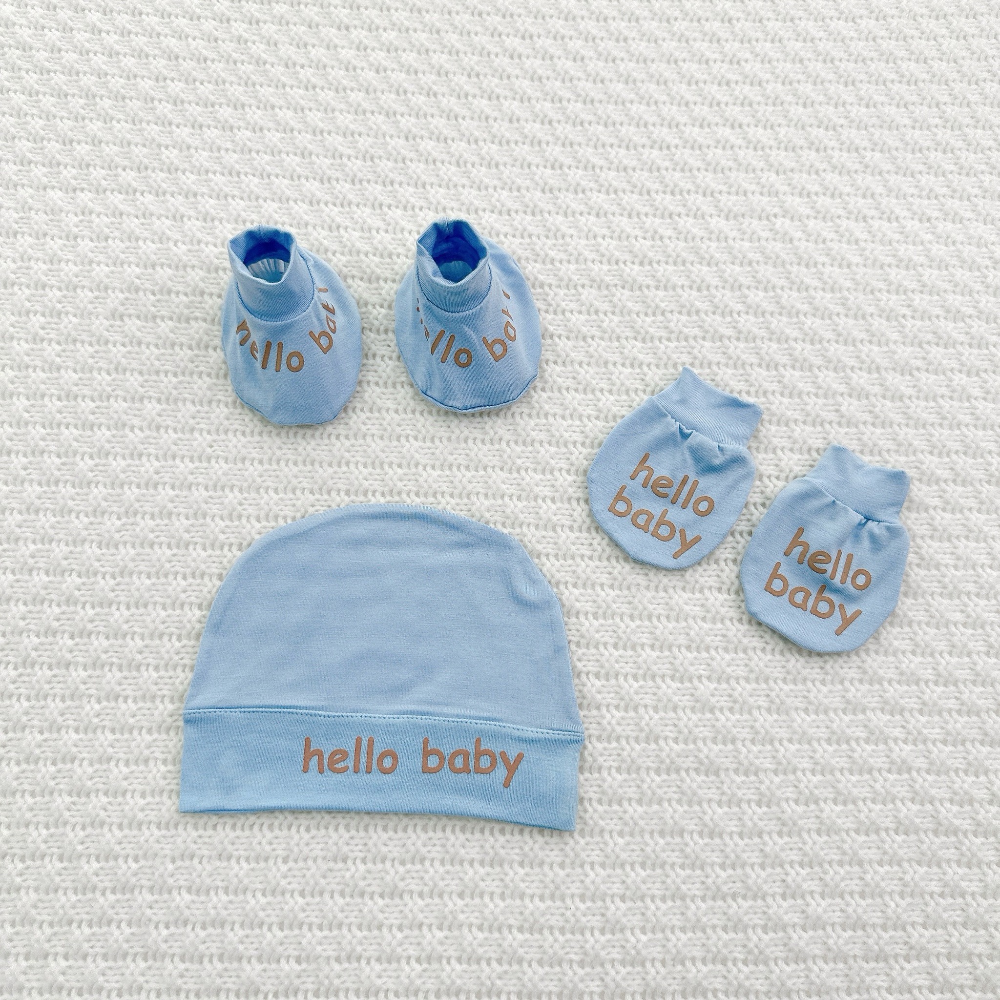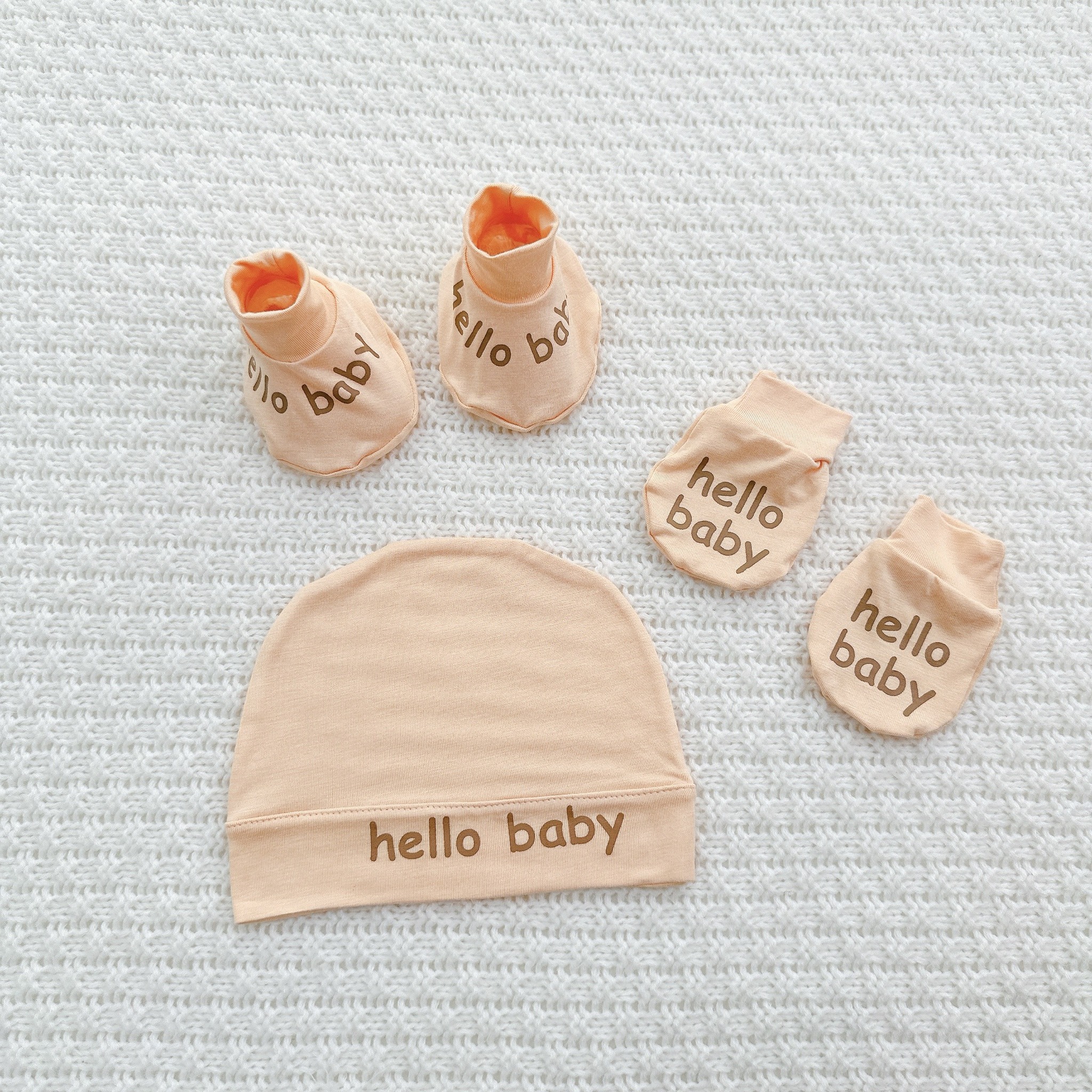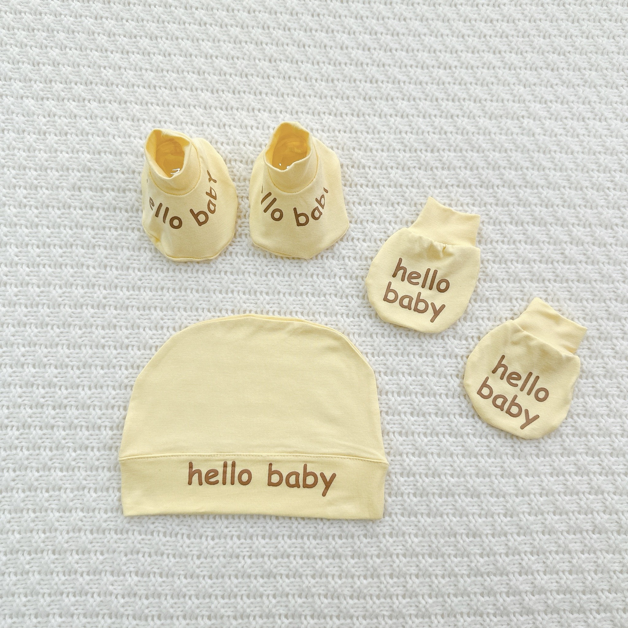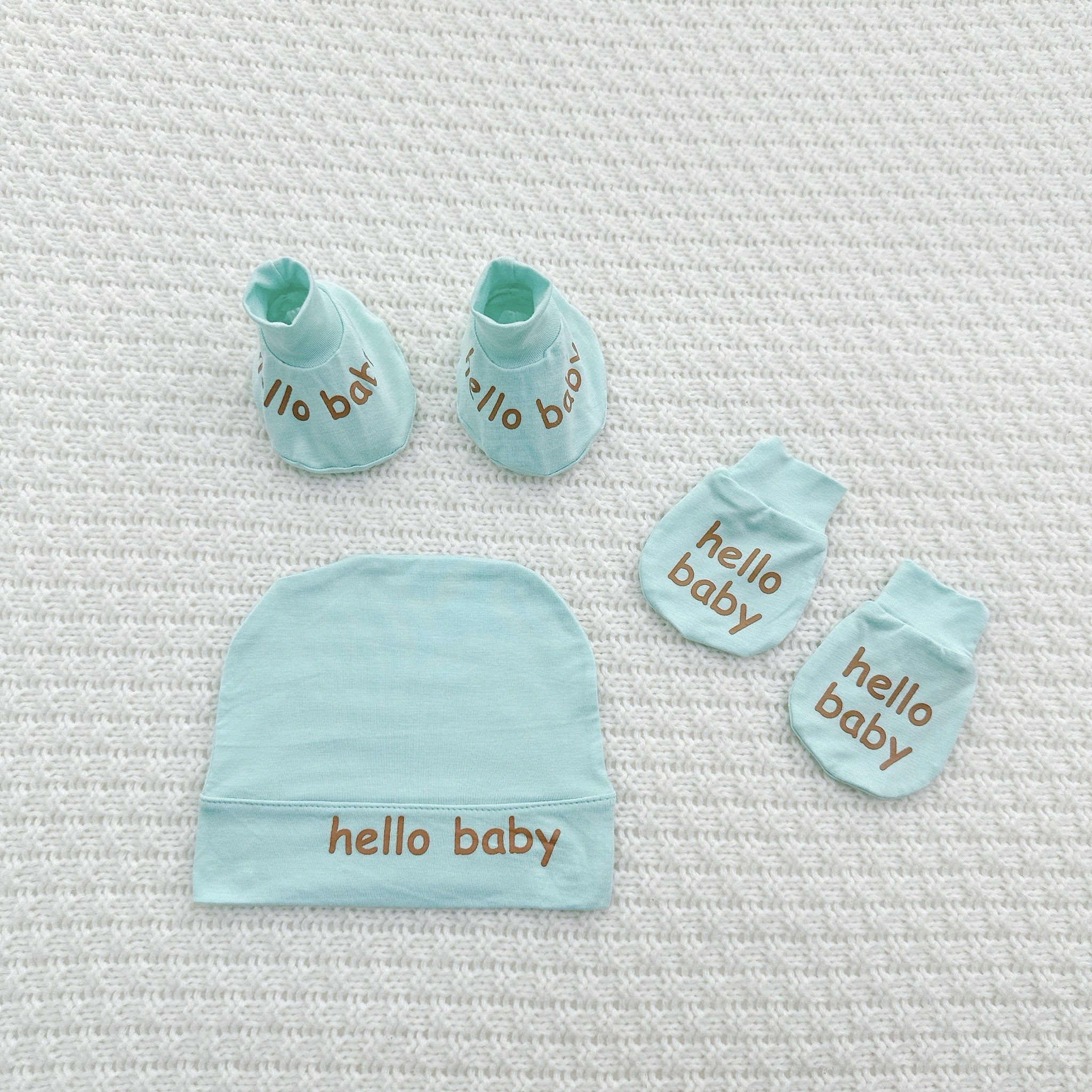 Set Mũ Bao Tay Bao Chân Cho Bé Sơ Sinh Hello Baby Chất Petit Mềm Mịn, Thoáng Mát, Co Giãn Tốt