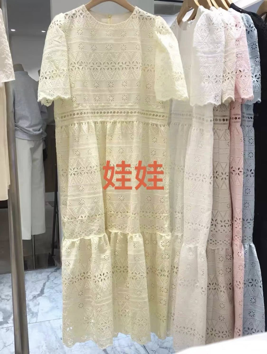 Đầm ren đục lỗ đủ các màu pastel nhẹ nhàng, thanh lịch