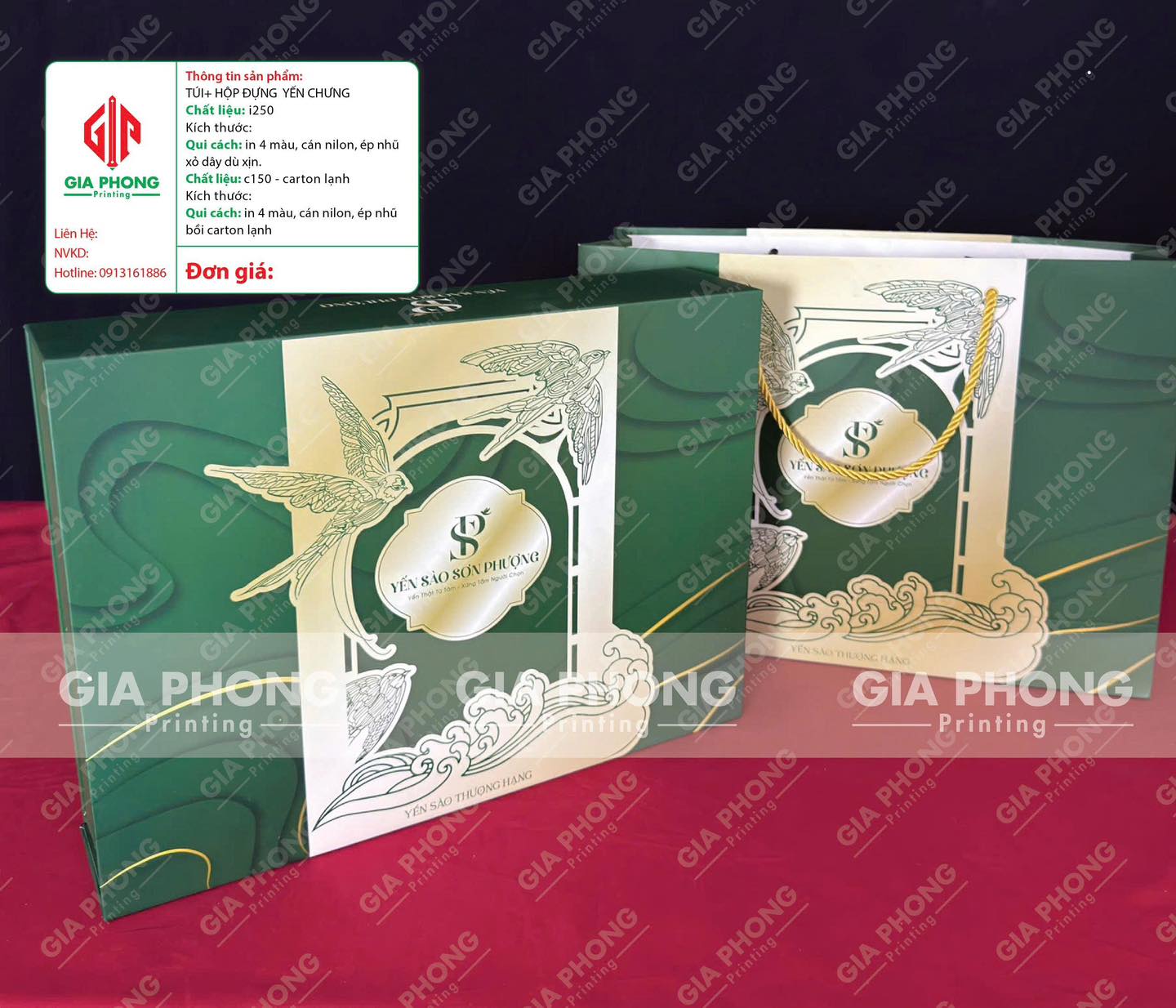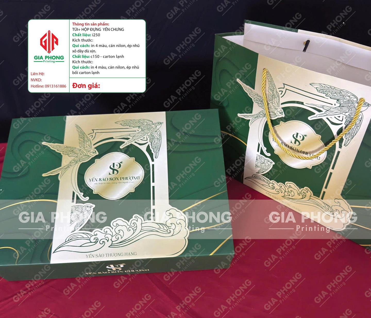 Bộ hộp và túi đựng tổ yến cao cấp bên em mới làm xong cho khách hàng .