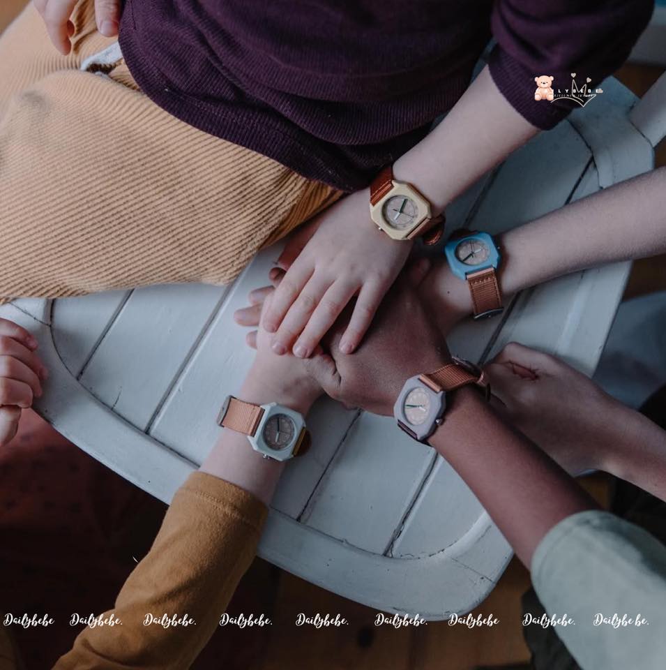 Đồng hồ **MINIKYOMO** với bảng màu pastel ngọt ngào, thiết kế tối giản nhưng cực kỳ nổi bật, bé đeo đi học hay đi chơi đều xinh hết nấc ✨