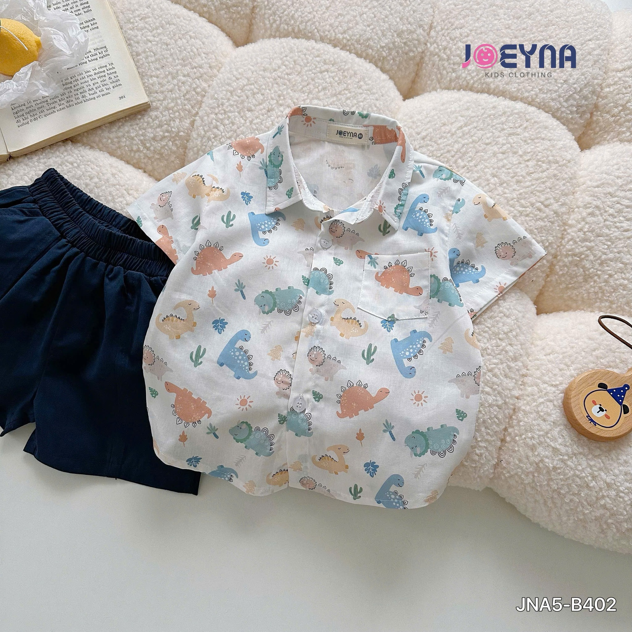 🦕Thiết kế áo sơ mi phối túi cá tính, điểm nhấn họa tiết khủng long ngộ nghĩnh, độc đáo, bé nào cũng thích mê