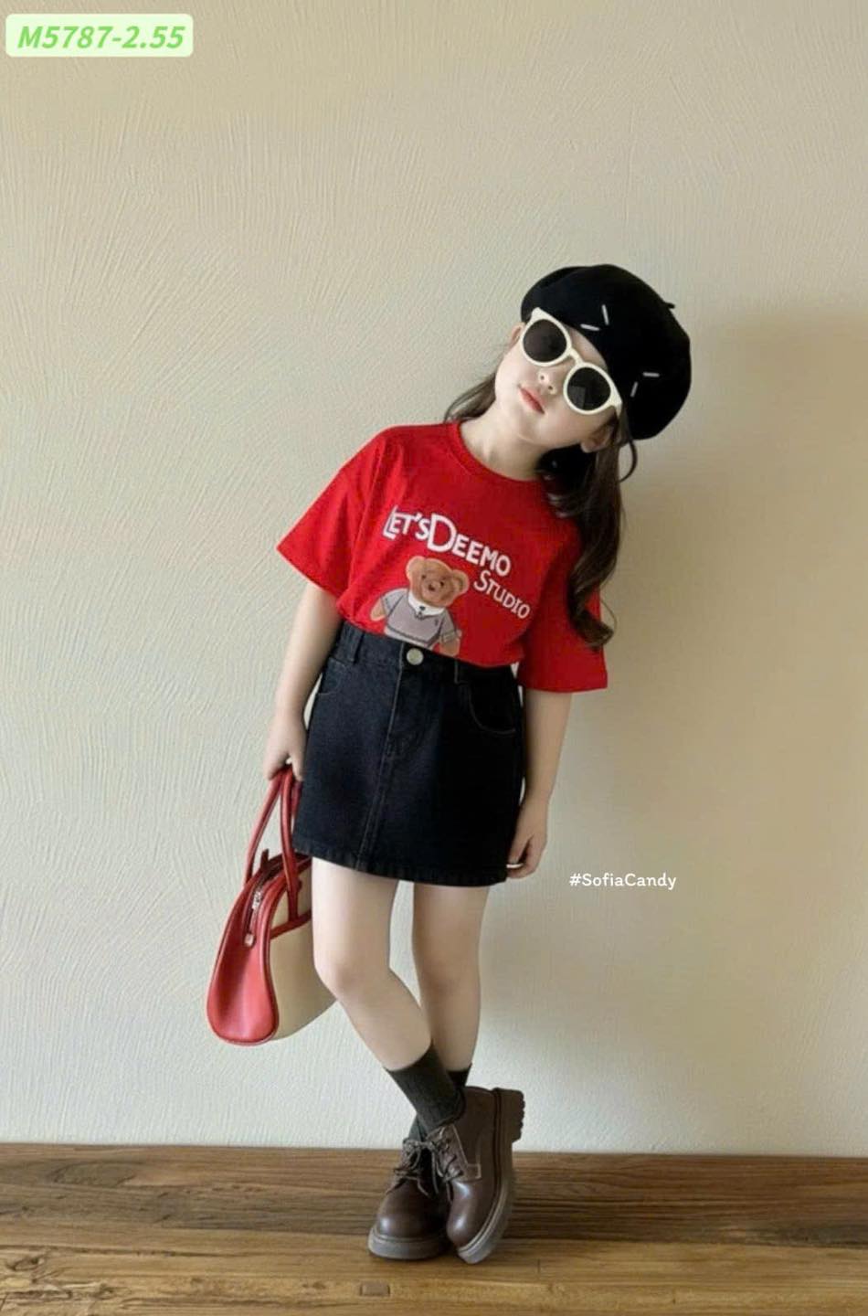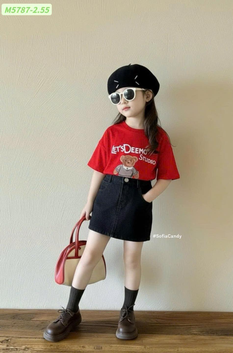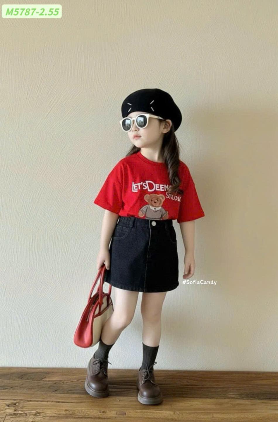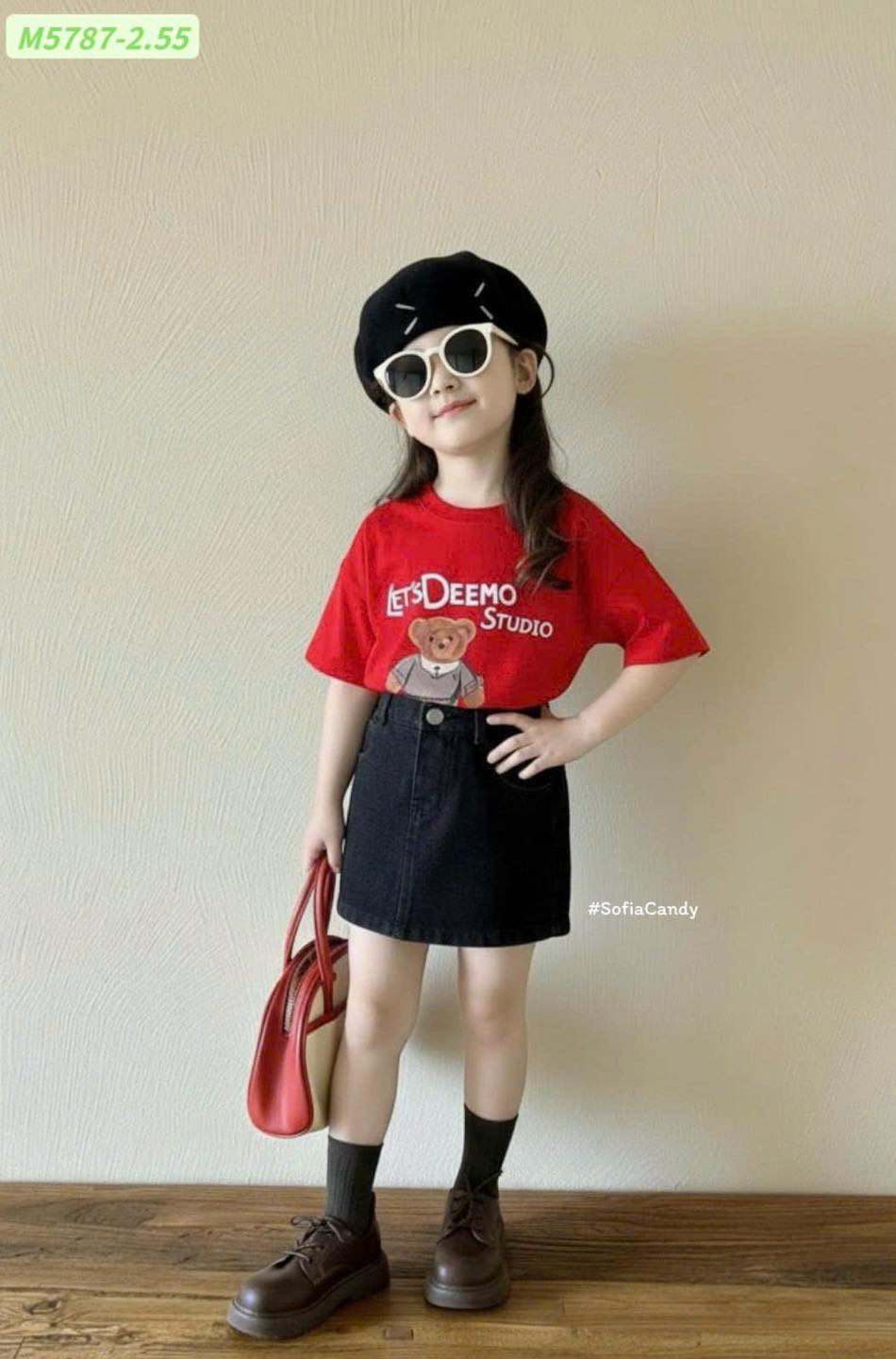 #Set #áo #thun #đỏ #hình #gấu #chân #váy #jean #đen #Phong #cách #Hàn #xinh #xắn #cá #tính #Áo #cotton #mềm #thấm #mồ #hôi #Chân #váy #jean #form #chuẩn #dễ #phối #đồ #Bé #mặc