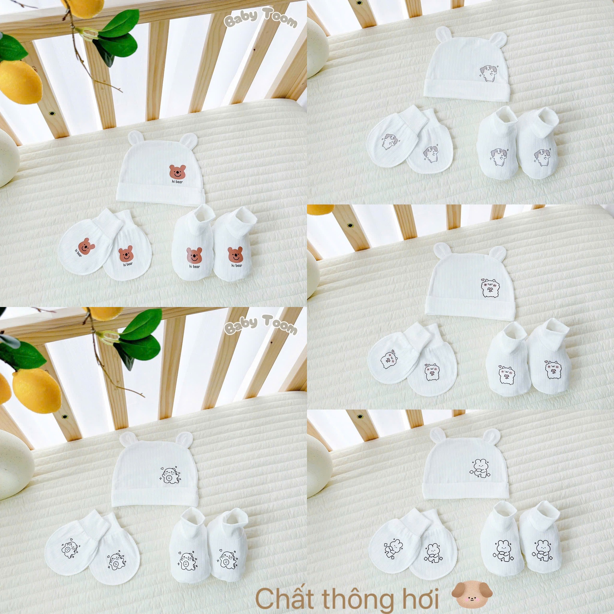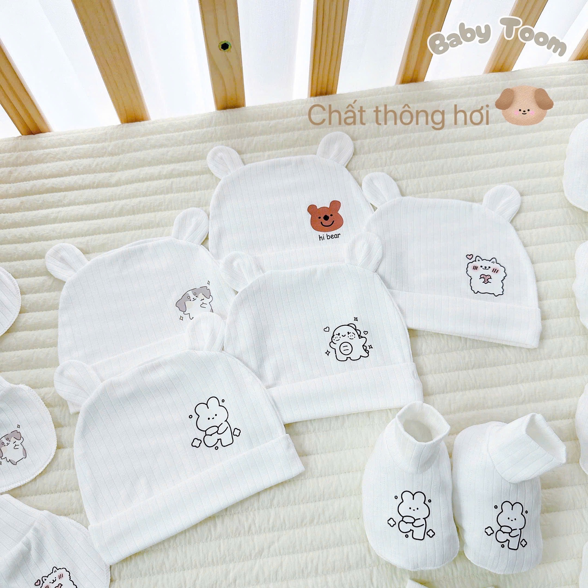 🌸 SET MŨ + BAO TAY + BAO CHÂN SƠ SINH BABY TOOM 🌸