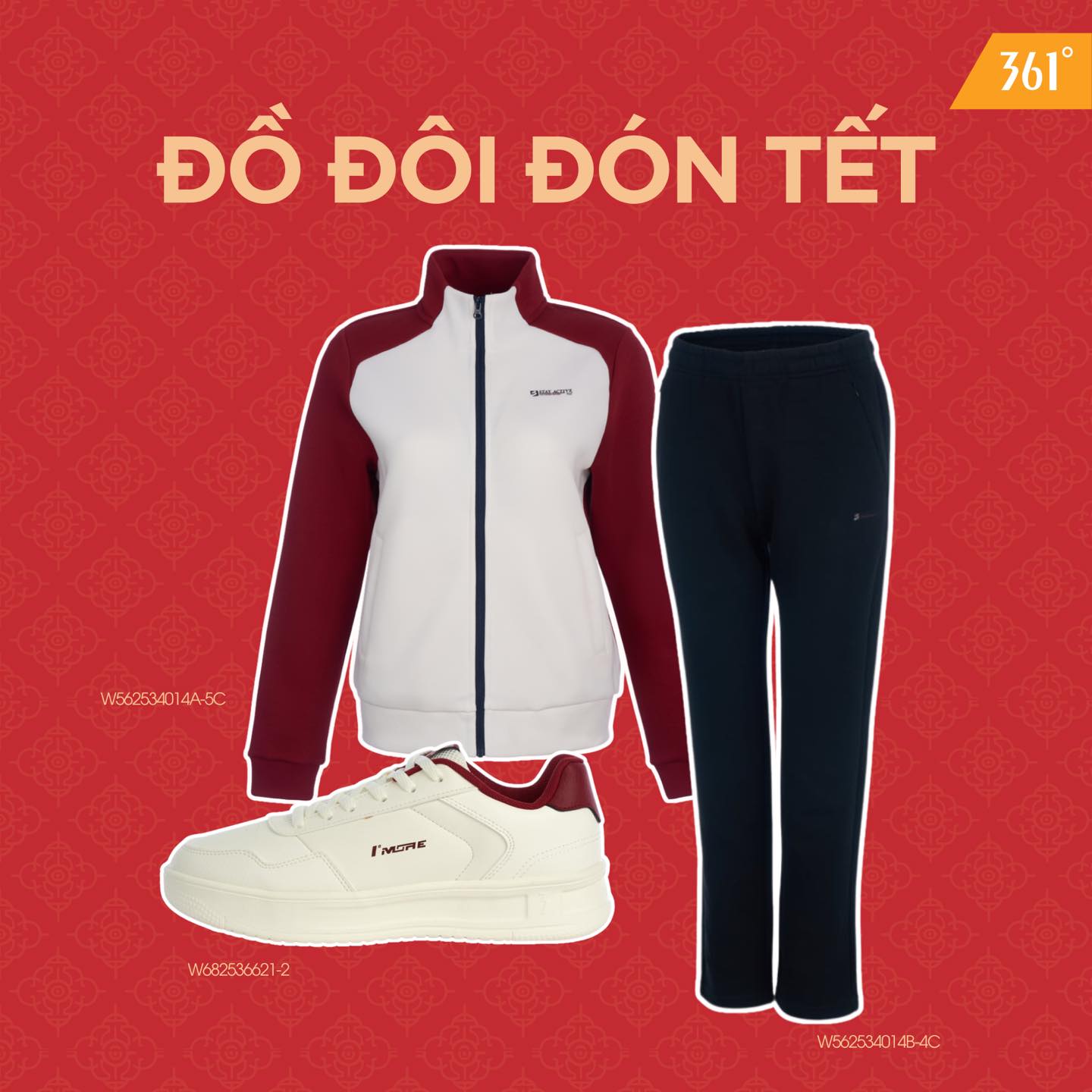 Và không gì hợp hơn một set nỉ đôi 361º Sports màu đỏ đặc trưng – gam màu tượng trưng cho may mắn, hạnh phúc và sung túc suốt cả năm.